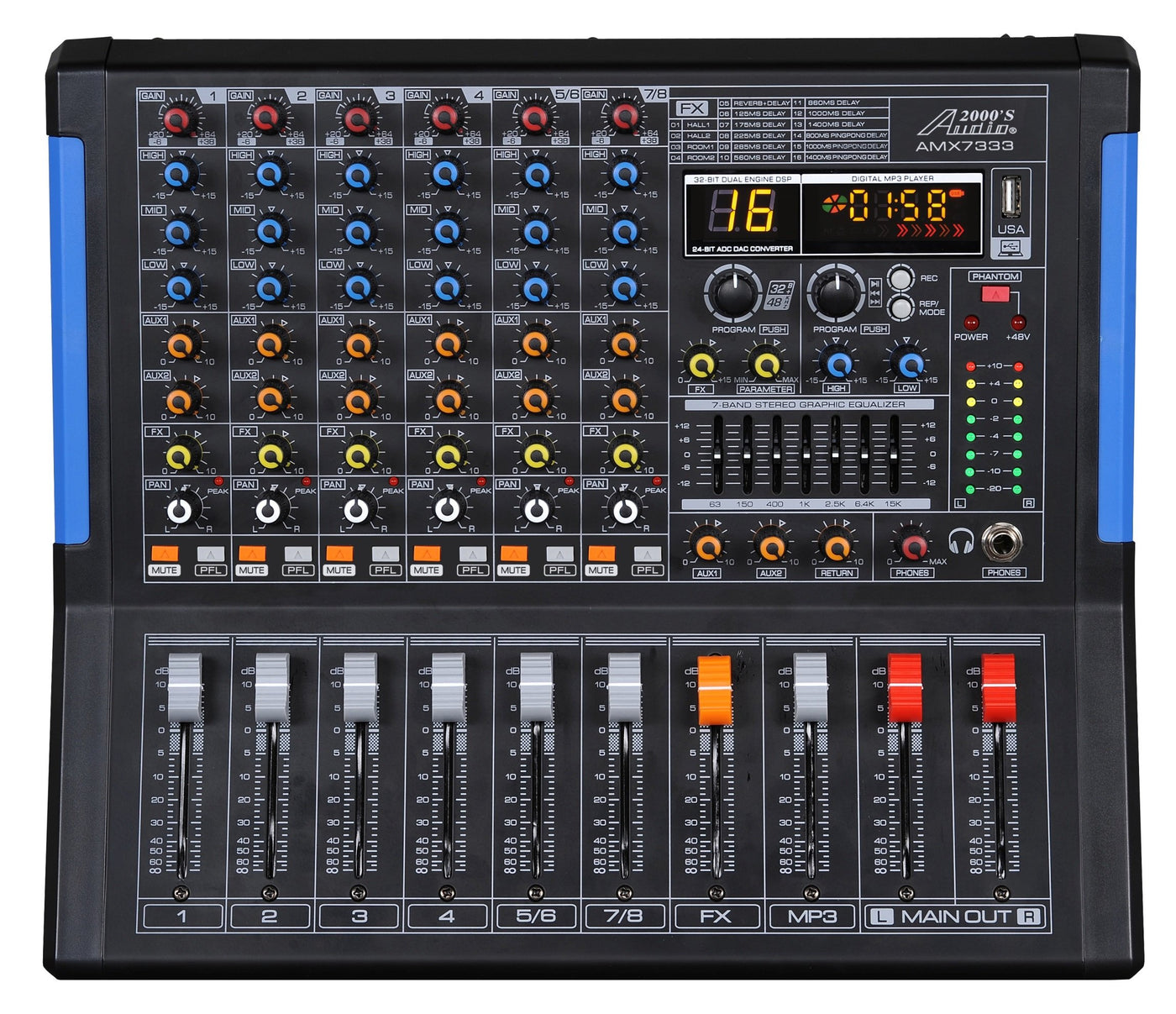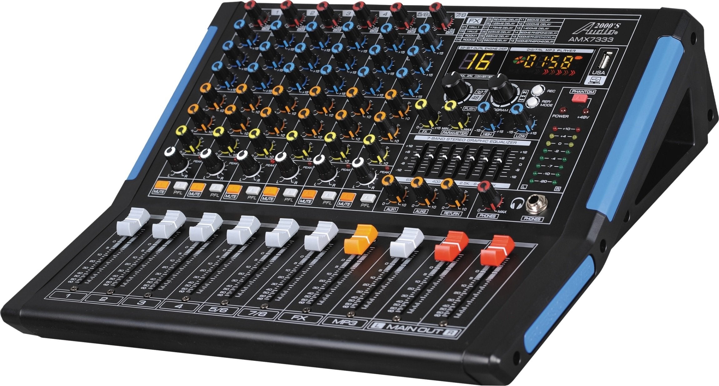 Professional Eight Channel Audio Mixer With Usb Interface, Bluetooth, And Dsp Sound Effects