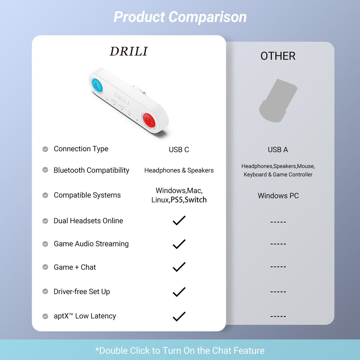 Ps5 Bluetooth Audio Adapter, Drili Low Latency Bluetooth Audio Transmitter, Usb C Headphone Adapter With Aptx Low Latency Suppor