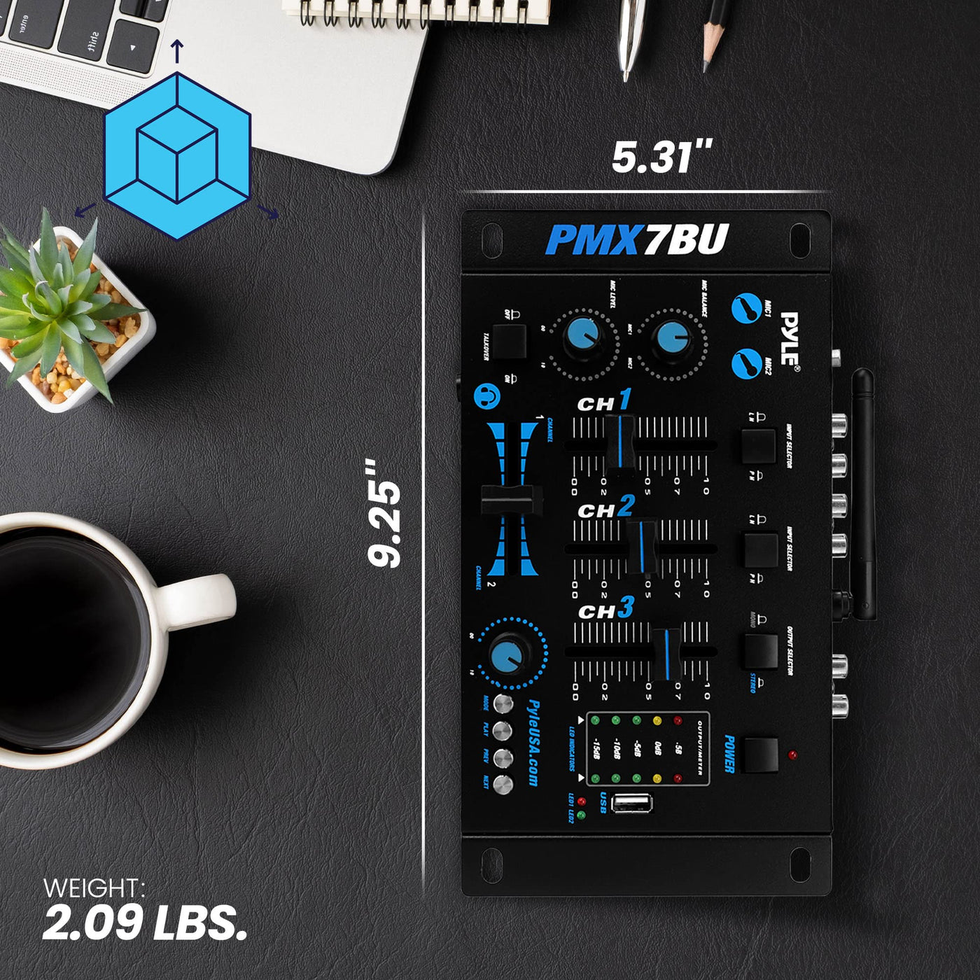 Pyle, 3 Wireless Audio Machine 3 Channel Bluetooth Compatible Dj Controller Sound Mixer System With Mic Talkover, Usb Reader, Du