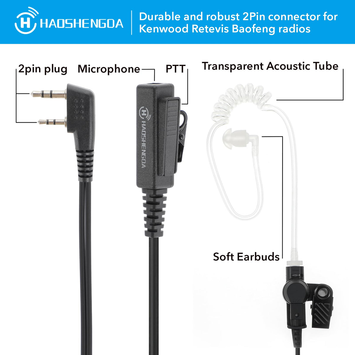 Radio Earpiece Walkie Talkie Earpiece With Mic Compatible For Kenwood Baofeng Retevis Samcom Btech Walkie Talkies Radios(Acousti