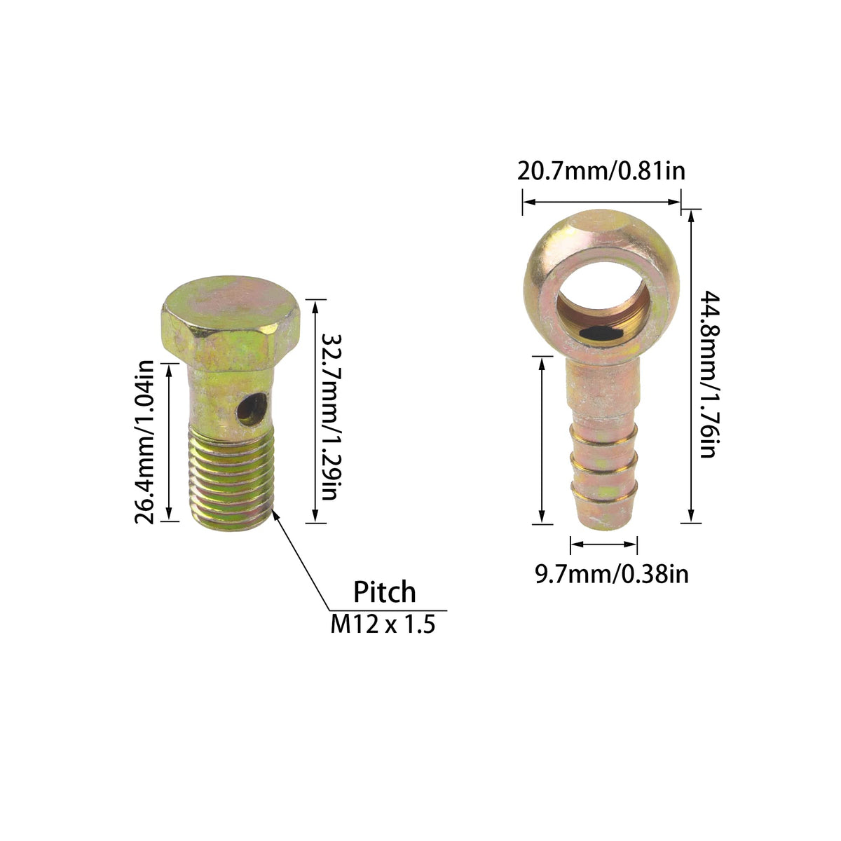Rrina 2 Sets M12 Banjo Hose Barb Bolt Fittings Banjo Bolt Screw Crush Washer Kit For Car Motorcycle (M12X1.5)