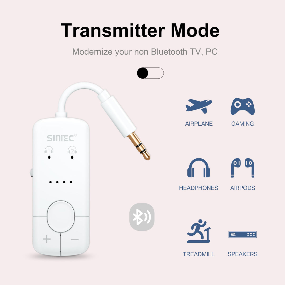 Sunitec Bluetooth Audio Transmitter For Airplane: Wireless Transmitter Adapter For Audio Sharing To 2 Airpods Or Headphones Support Dual Link Aptx Adaptive - Bt200