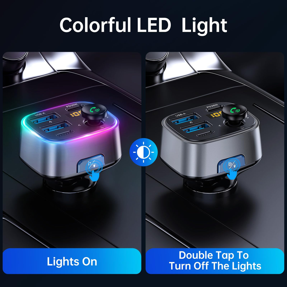 Syncwire Bluetooth 5.3 Fm Transmitter Car Adapter 48W (Pd 36W & 12W) [Light Switch] [Hi-Fi Deep Bass] [Fast Charge]