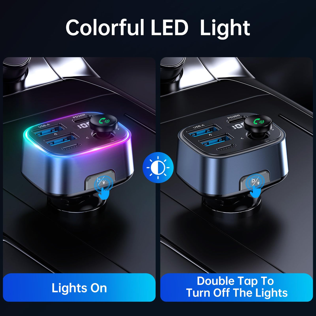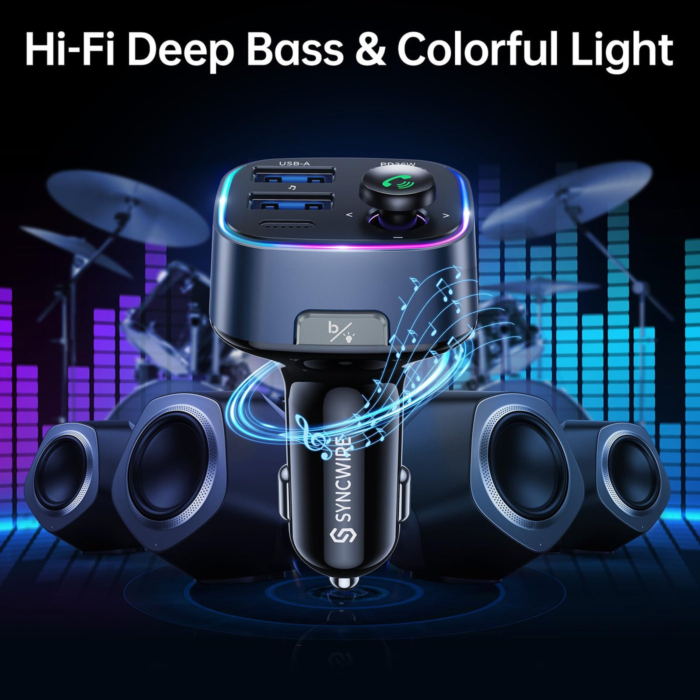 Syncwire Bluetooth 5.3 Fm Transmitter Car Adapter 48W(Pd 36W & 12W) [Light Switch] [Hi Fi Deep Bass] [Fast Charging] Wireless Ra