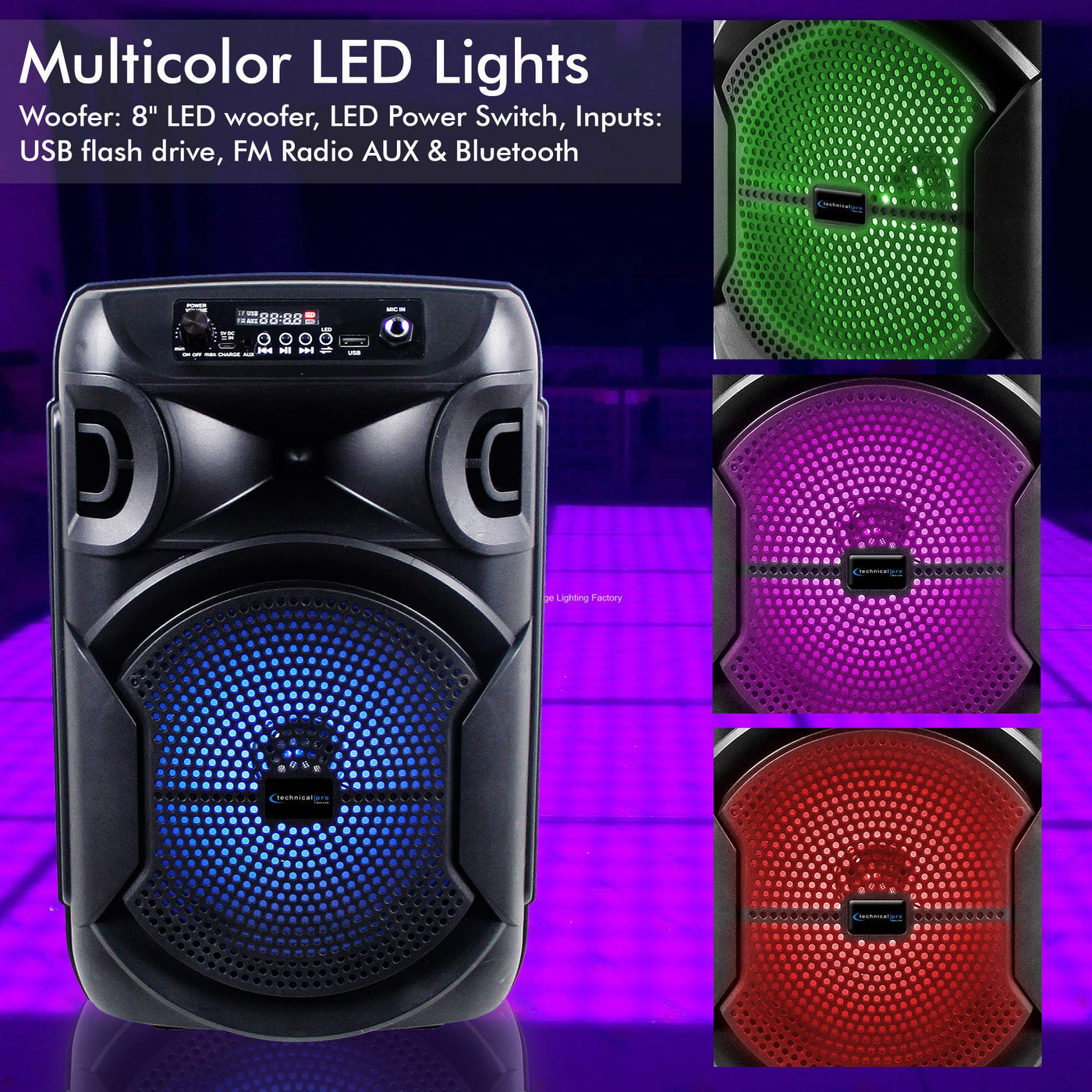 Technical Pro 8 Inch Portable 800 Watts Bluetooth Speaker With Woofer & Tweeter, Festival Pa Led Speaker With Bluetooth/Usb Card, True Wireless Stereo, 30 Feet Bluetooth Range (Speaker)