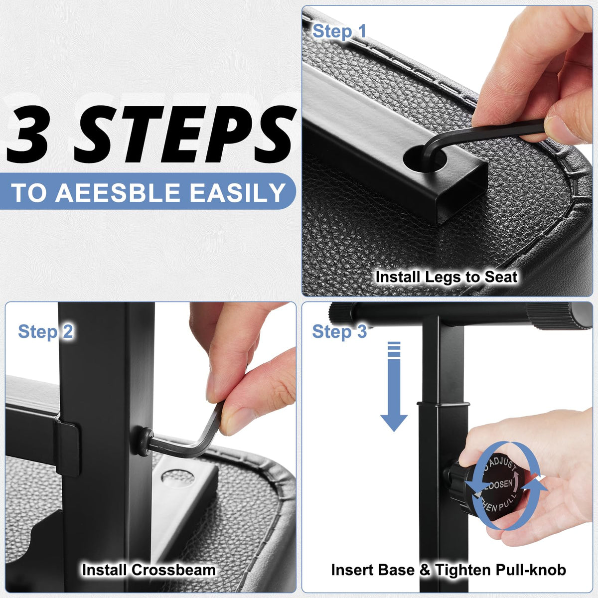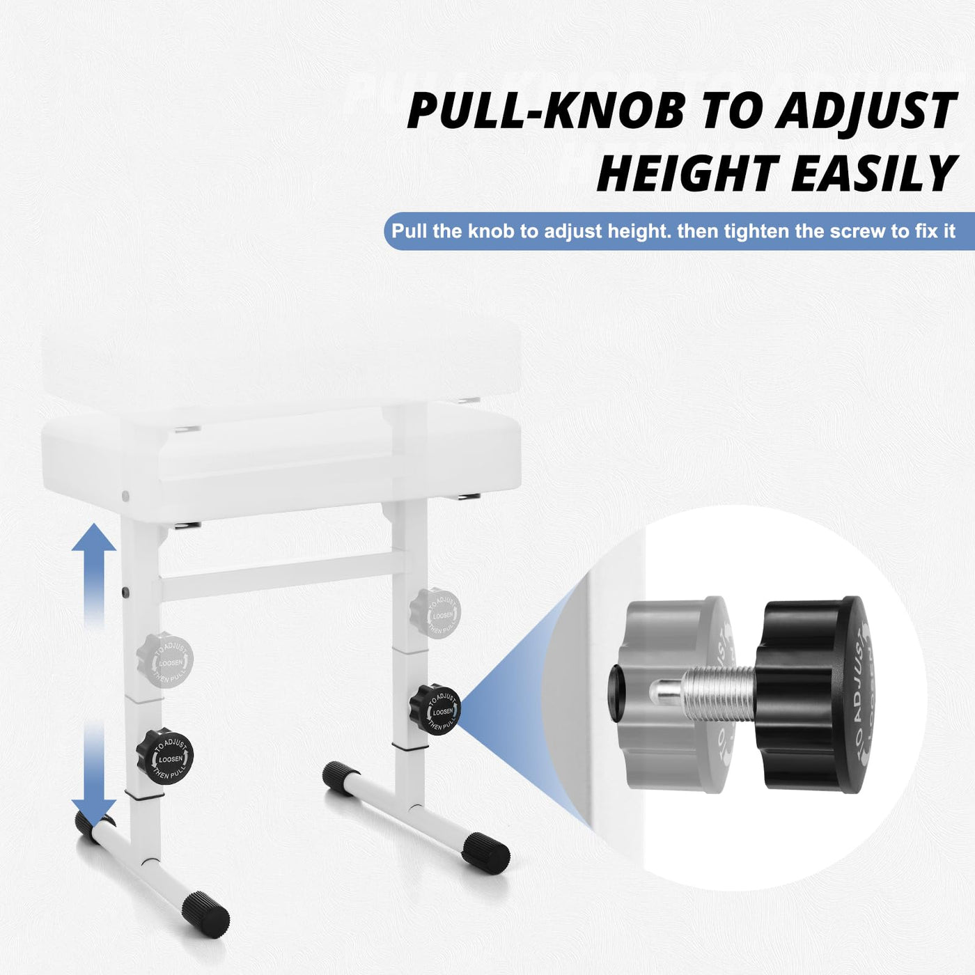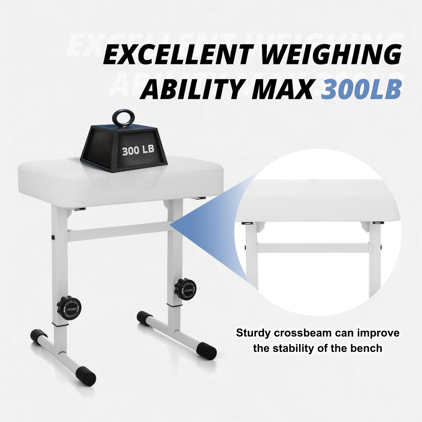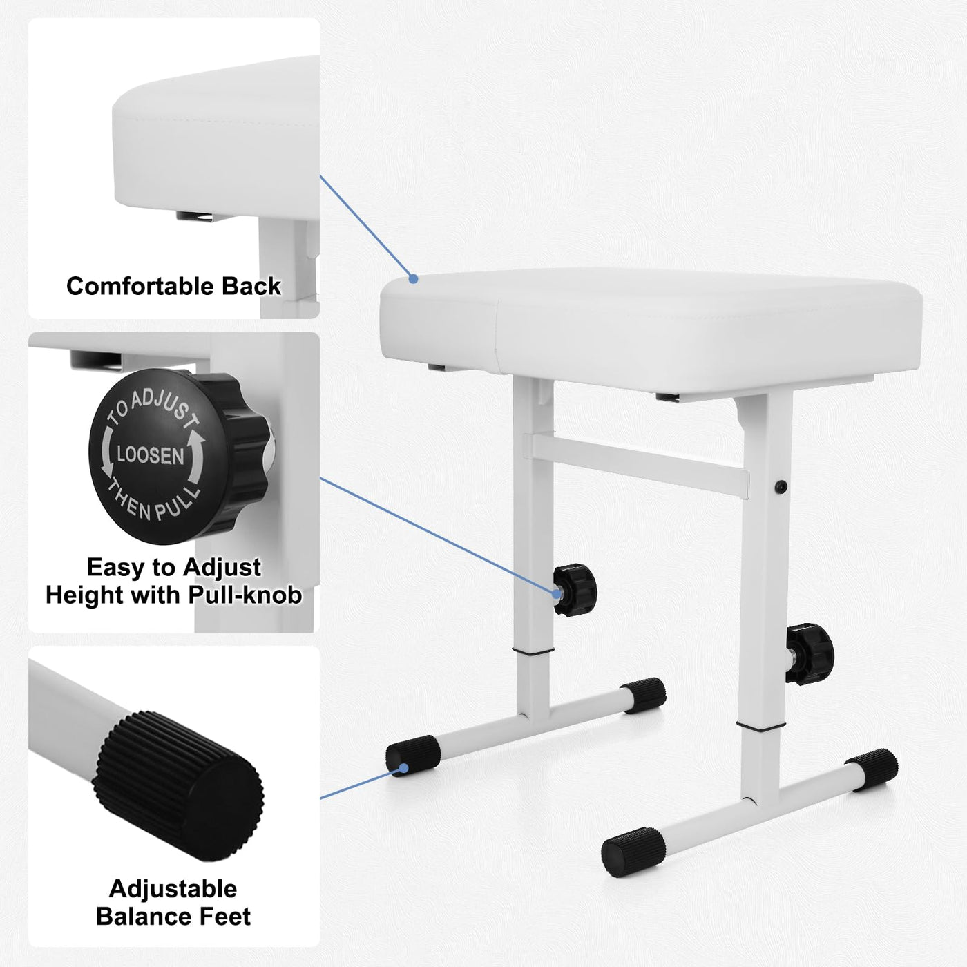 Tentoten Adjustable Height Piano Bench, Comfortable Padded Seat For Keyboard & Piano Stool, White