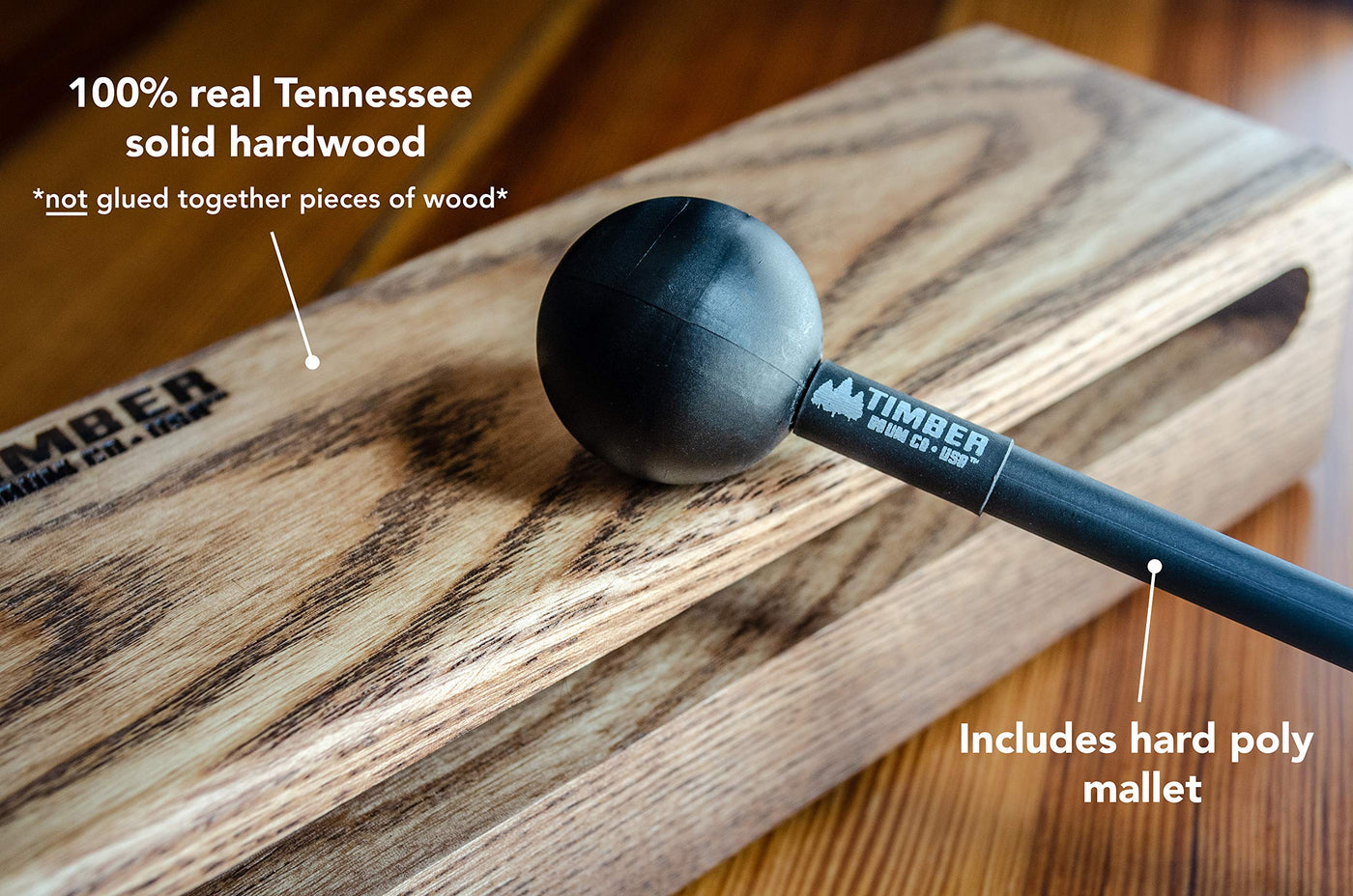 Timber Drum Co. Is A Small Workshop Located In Nashville, Tennessee Dedicated To Crafting Made In U.S.A. Instruments With Locally Sourced Materials. The Sound Of These Wood Blocks Is Natural, Warm And Full Of Rich, Knocking Tone That Can Only Come From Hand-Crafted Wood Materials. This Is The Real And Authentic Wood Block Sound That Plastic Blocks Can Only Attempt To Mimic. This Block Is Built From One Solid Piece Of American Hardwood With A Hand-Rubbed Oil Finish That Darkens The Look While Bringing Out The Natural Wood Grain. Our One-Piece Design Projects A Focused Tone That Cuts Through Other Instruments With Plenty Of Volume. It Is Also Extremely Durable. Multiple Sizes Are Available, Which Allow You To Create Complex Rhythms With Changes In Pitch, Since The Larger The Block The Lower The Pitch. Add A Timber Drum Co. Wood Block To Your Personal Collection Of Sound Effects, And Be Ready When You Need An Authentic Tone For Your Next Performance Or Recording. For The Best Sound, Play Near The Center And Close To The Edge. Includes One 8 Hard Polymer Mallet And Four Rubber Feet With Adhesive Backing That You Can Add To The Block Yourself If You Choose. Made In Nashville, Tennessee, U.S.A.