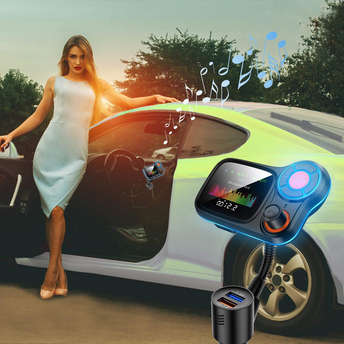 Car Bluetooth Adapter Receiver,Vehicle Handsfree Call Fm Transmitters,Qc3.0 And Smart 2.4A Dual Usb Charger,1.8'' Color Display,Aux Port,Tf Card Usb Mp3 Music Player Car Bluetooth Adapter Fm Transmitter Receiver Dual Usb Charger Hands Free Call