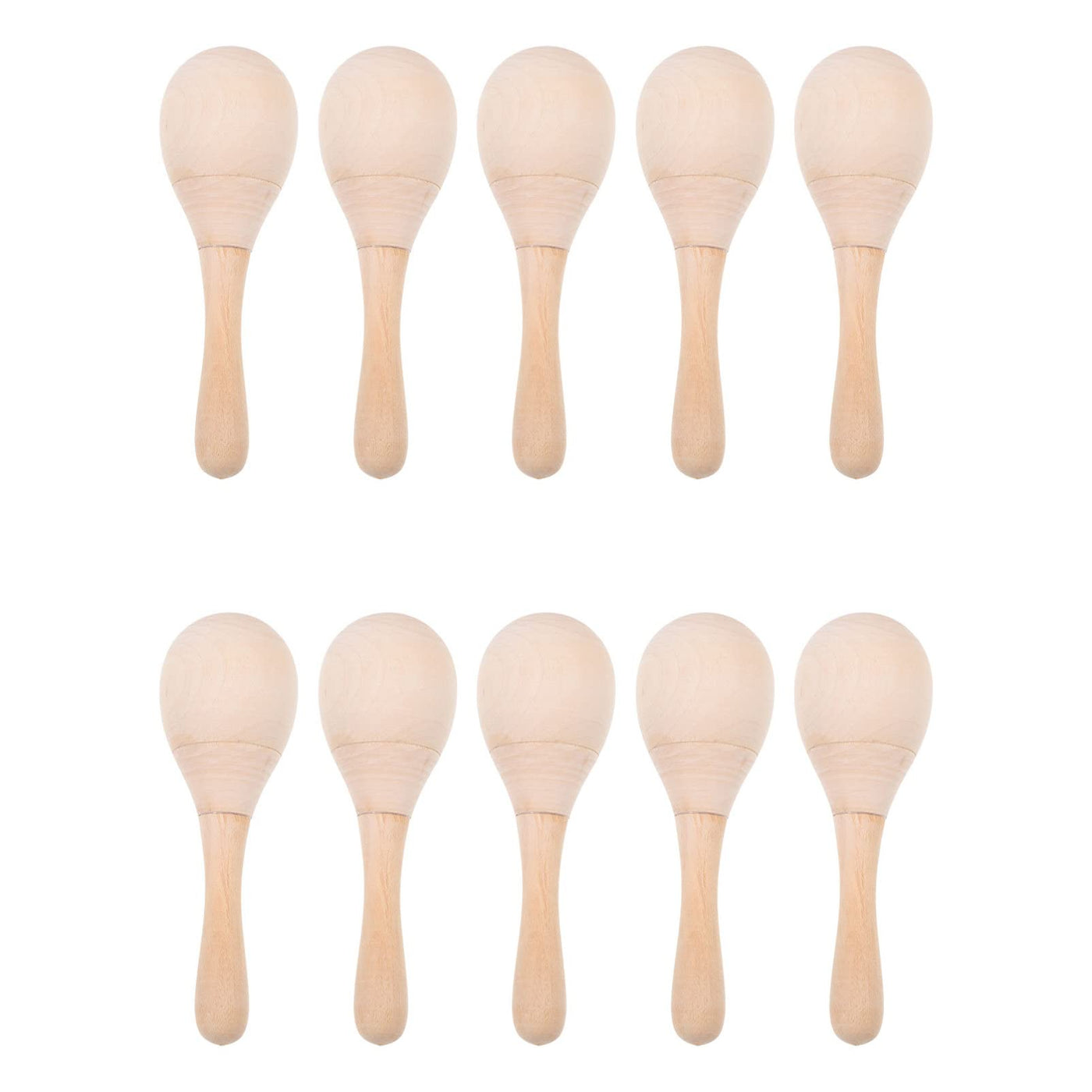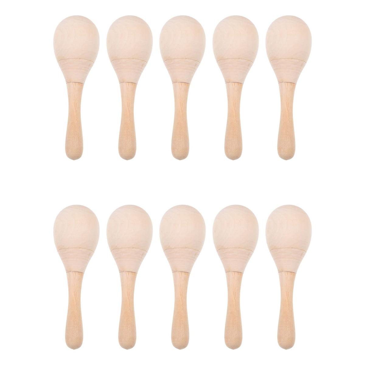 Ultnice Mini Wooden Maracas Wood Hand Maracas Blank Percussion Rattles Unfinished Wooden Maracas Diy Blank Maracas (10Pcs)