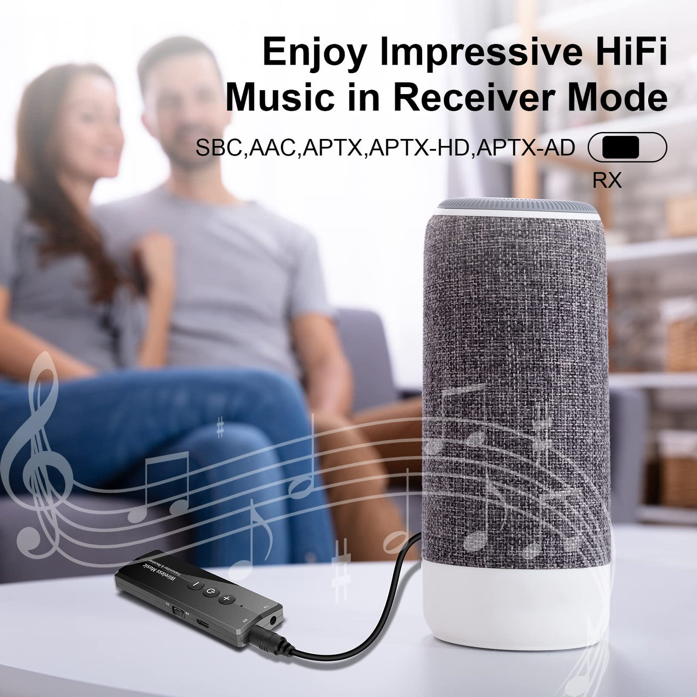 Upgraded Bluetooth 5.3 Transmitter Receiver, Bluetooth Audio Adapter For Airplane Tv Car Gym Home Stereo System, Aptx Adaptive L