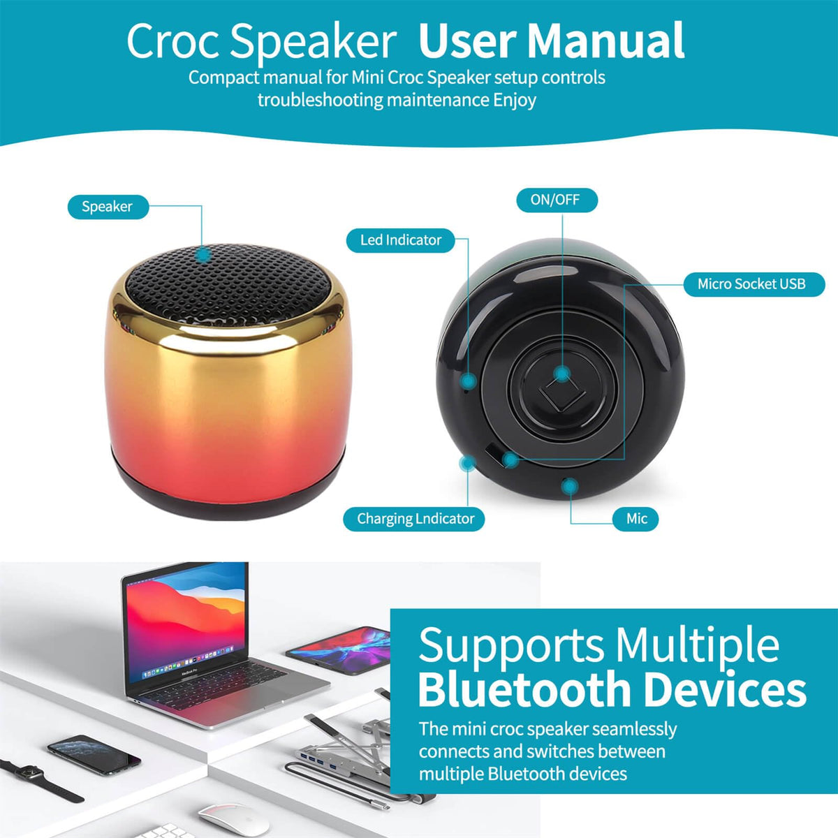 1. Impress Your Friends With Tunes On Your Shoes Introducing Forte Speaker, The Coolest Accessory For Your Crocs!2. Convenience Of Portable Music Or Sounds With You Wherever You Go.3. Upgrade Your Shoe Decoration Charms And Turn The Tunes With Croc Speaker!4. Say Goodbye To Wires: The Mini Croc Speaker Is Bluetooth Enabled, Making It Easy To Connect To Your Phone Or Other Device!