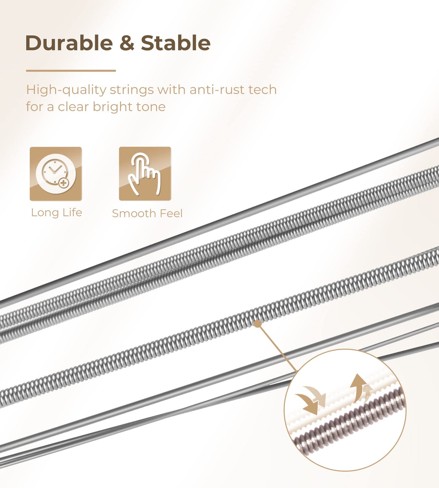 Made Of High-Quality Steel And Treated With Rust Prevention, It Is Very Durable And Comfortable, Great For Beginners, Intermediates And Professional Players. (Custom Medium:.009/.011/.016/.026/.009)