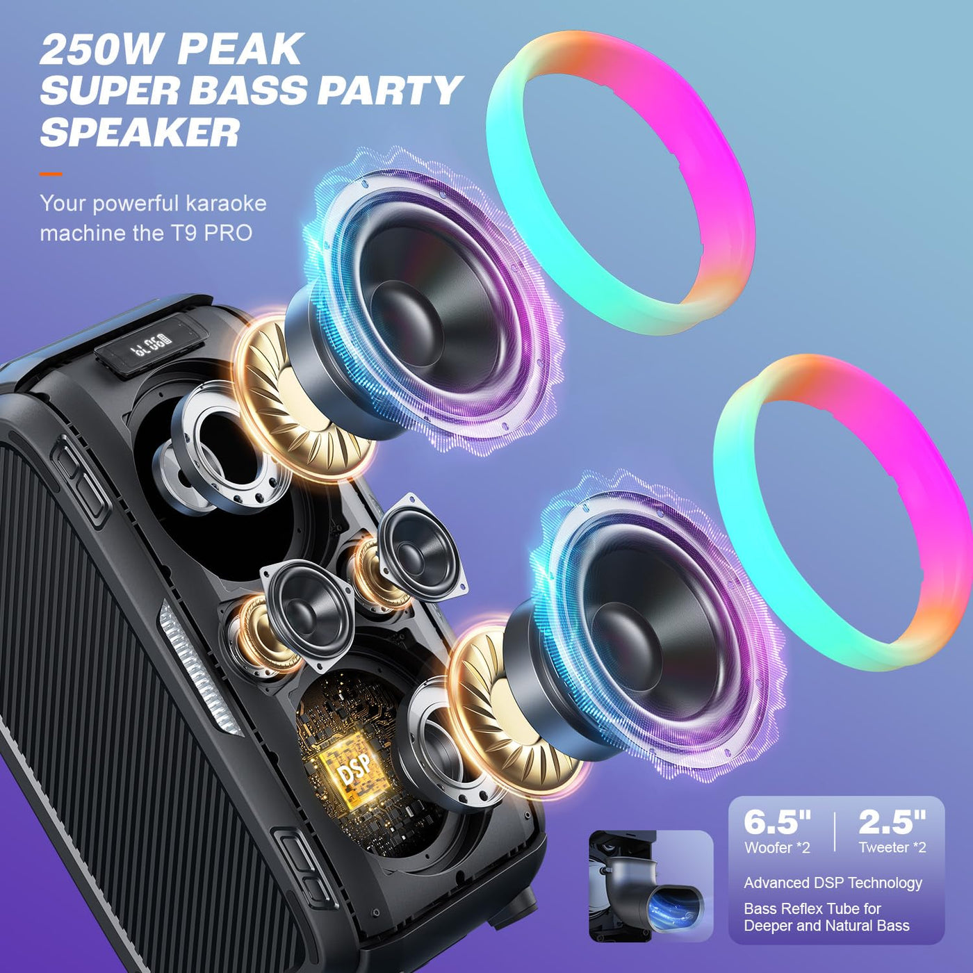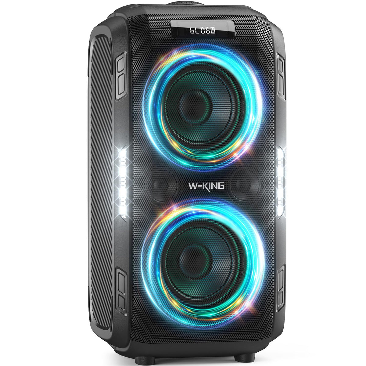W-King T9 Pro 200W Peak Party Large Speaker - Feel The Party, Ambient, And Dance! ? Superior Sound Fidelity, Premier Hifi Audio - The Highest Audio Quality,200W Peak Power, With The Fervor Of A Suona Forte, Igniting A Party Rock Ambiance. Experience The Deepest Bass And Clean, Clear Sound Quality. ? Body-Shaking Bass: 2* 6.5'' Woofers, 2* 2.5'' Tweeter, Bass Reflex Enclosure, Achieves More Effective Air Movement, Releasing Deeper, Cleaner, And More Natural Bass In Larger Spaces While Minimizing Distortion. ? Multi-Function Rotary Button, 12 Types Of Adjustable Custom Bass(Eq) Settings. Embark On Your Individualized Musical Odyssey. ? W-King Dsp Advanced Chip Technology: Bumping Bass & Tremendous Sound. ?Thunderous 120Db Sound, Plenty Loud For Any Crowd. ? True Wireless Stereo Pairing: For An Even Bolder Stereo Sound. Just Press And Hold The ''Triangular Tandem'' Button For 1 Second To Achieve A Huge 240W Double The Power Sound. ? Supports 6.35Mm Dynamic Microphones! Suitable For Wireless Microphones With A 6.35Mm Output Receiver, Not Included! Seize The Mic, Become The Rockstar, And Host The Ultimate Karaoke Party Night With Friends And Family! ? Supports Guitar Input, Creating More Opportunities For Improvisation! Bring Your Favorite Guitar And Relax Every Cell Of Your Senses Anytime, Anywhere! Get Ready To Release Your Tension And Become The Biggest Superstar On The Music Center Stage. ? Dynamic Light Show That Dances With The Rhythm. Short Press The Led Button To Change Different Lighting Effects. ? Ipx5 Splashproof: Take It From A Backyard Dance Party To A Poolside Bash, Crafted With Lpx5 Splashproof Protection. ? Bluetooth 5.3 For A Stronger And More Stable Rock-Solid Connection, Allowing Non-Stop Music With A 100Ft Range. ? More Audid Options For Music Playback: Multiple Play Modes To Unleash Your Playlists. ? Portable Design: With An Easy-Grip Handle For Convenient Portability And Placement. ? Enjoy The Party All Day!