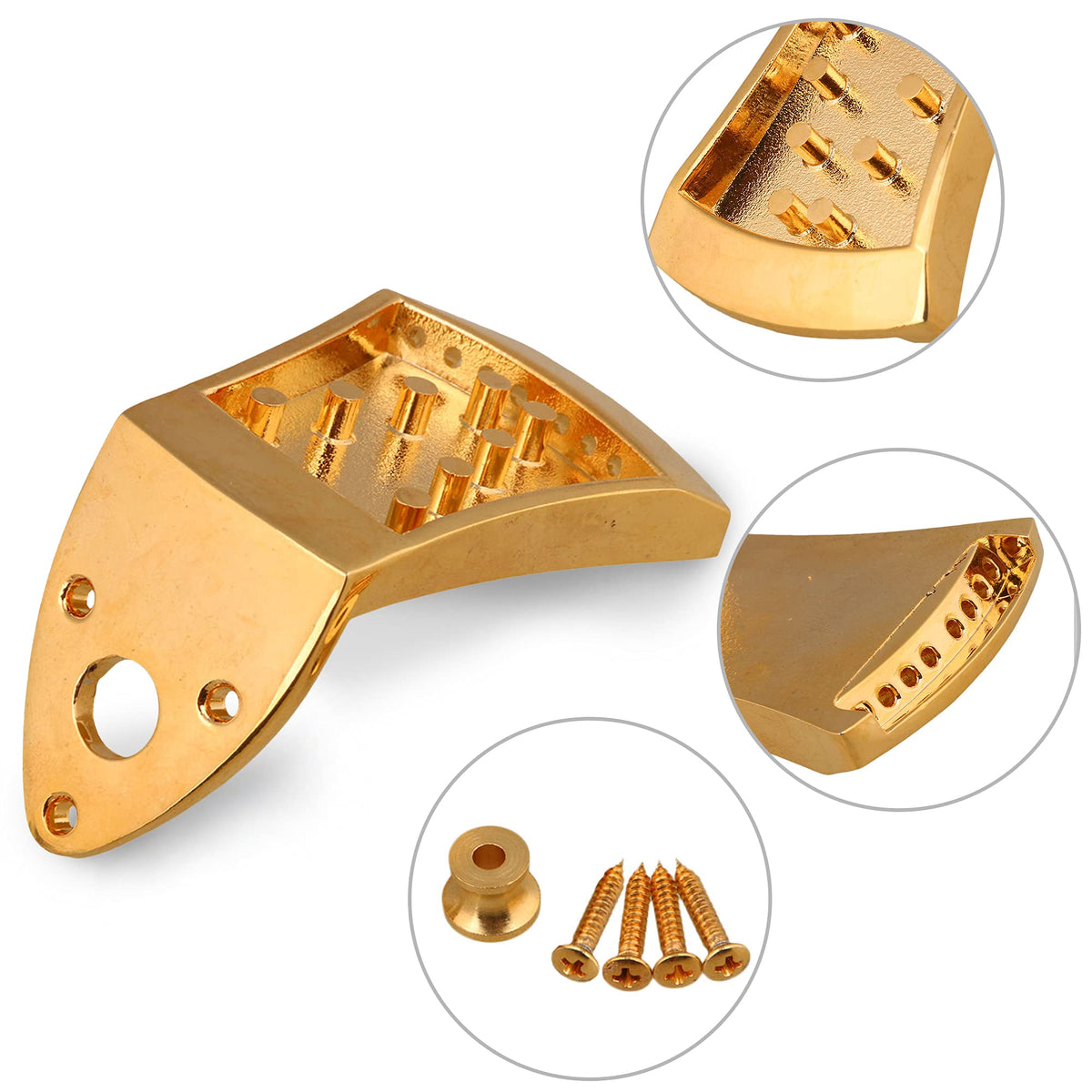 Yibuy 75X45X9Mm Golden Metal Triangle Mandolin Tailpiece Parts For 8 String Arched Top Mandolin With Screws