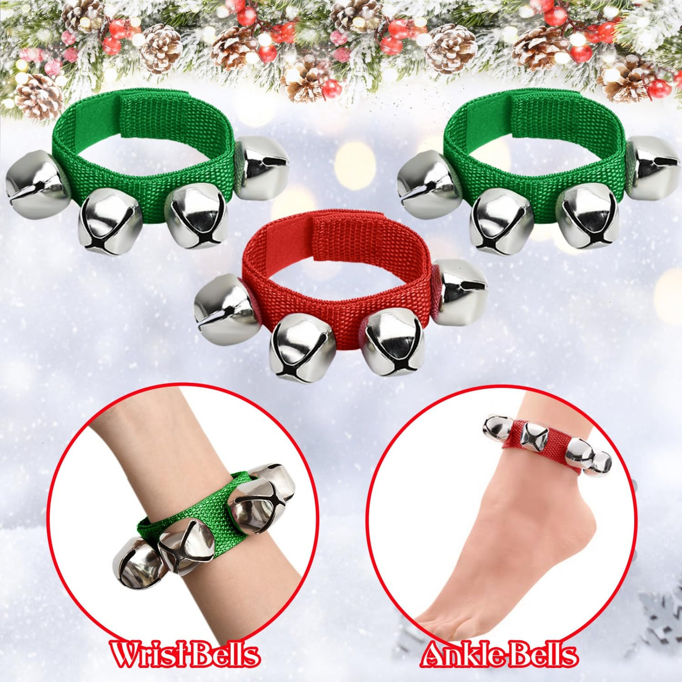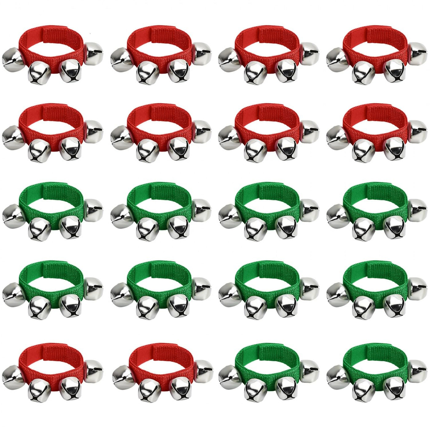 Yoleshy 20 Pcs Jingle Bells Instrument, Wrist Bells Hand Jingle Bells, Music Bells Instrument Jingle Bell Bracelet, Ankle Bells Percussion Party Favors, Large Jingle Bells (Red & Green)