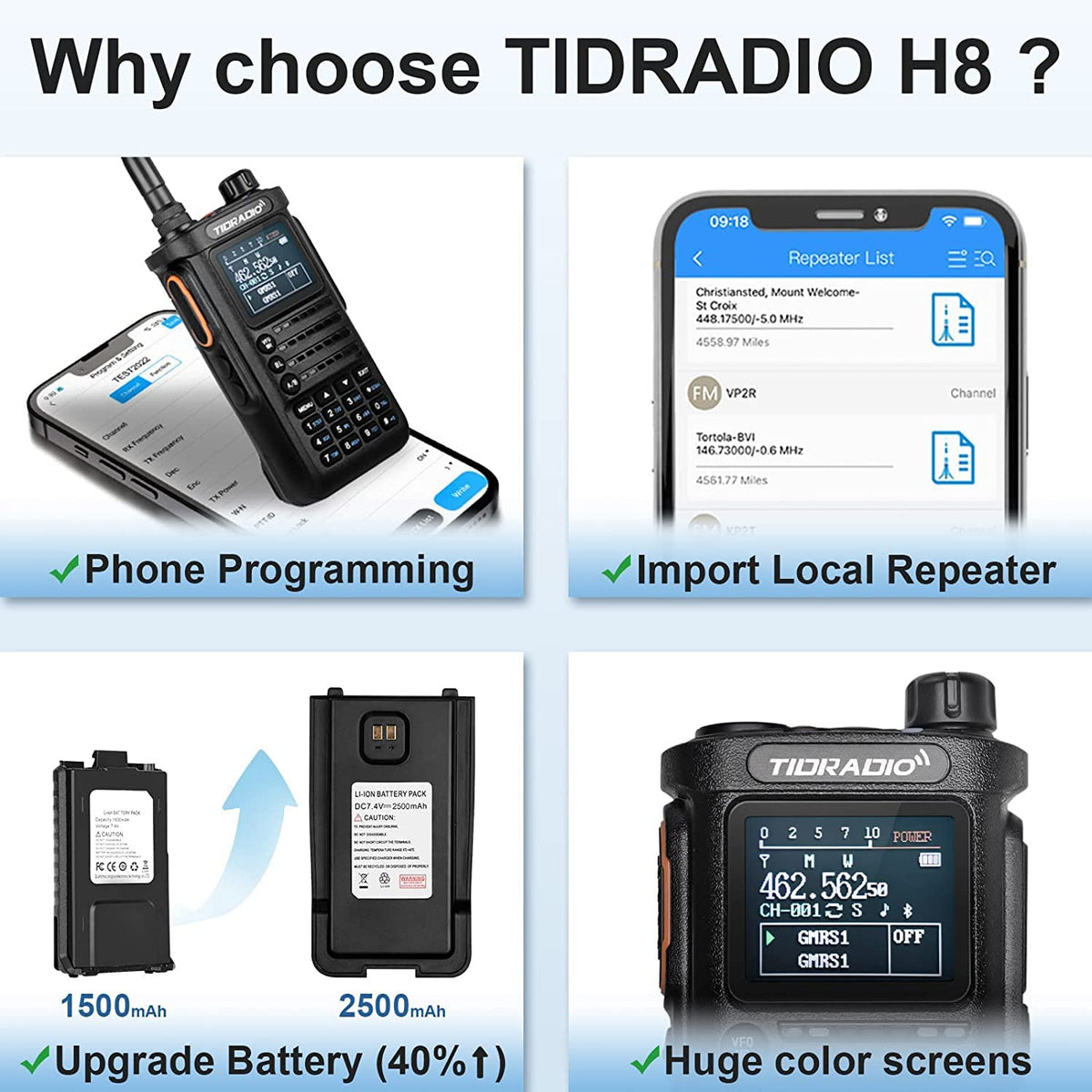Tidradio H8 Gmrs Handheld Radio App Wireless Programmable