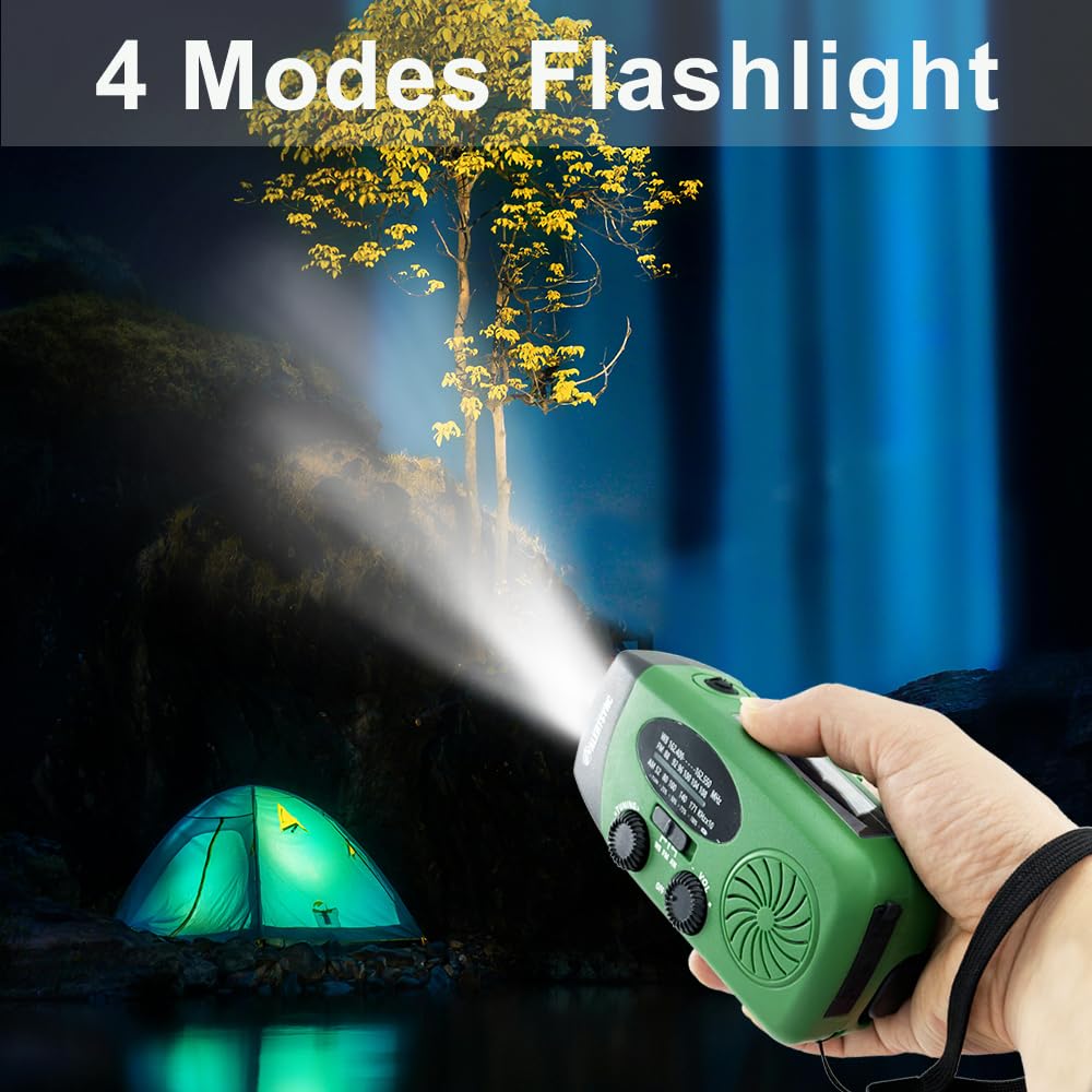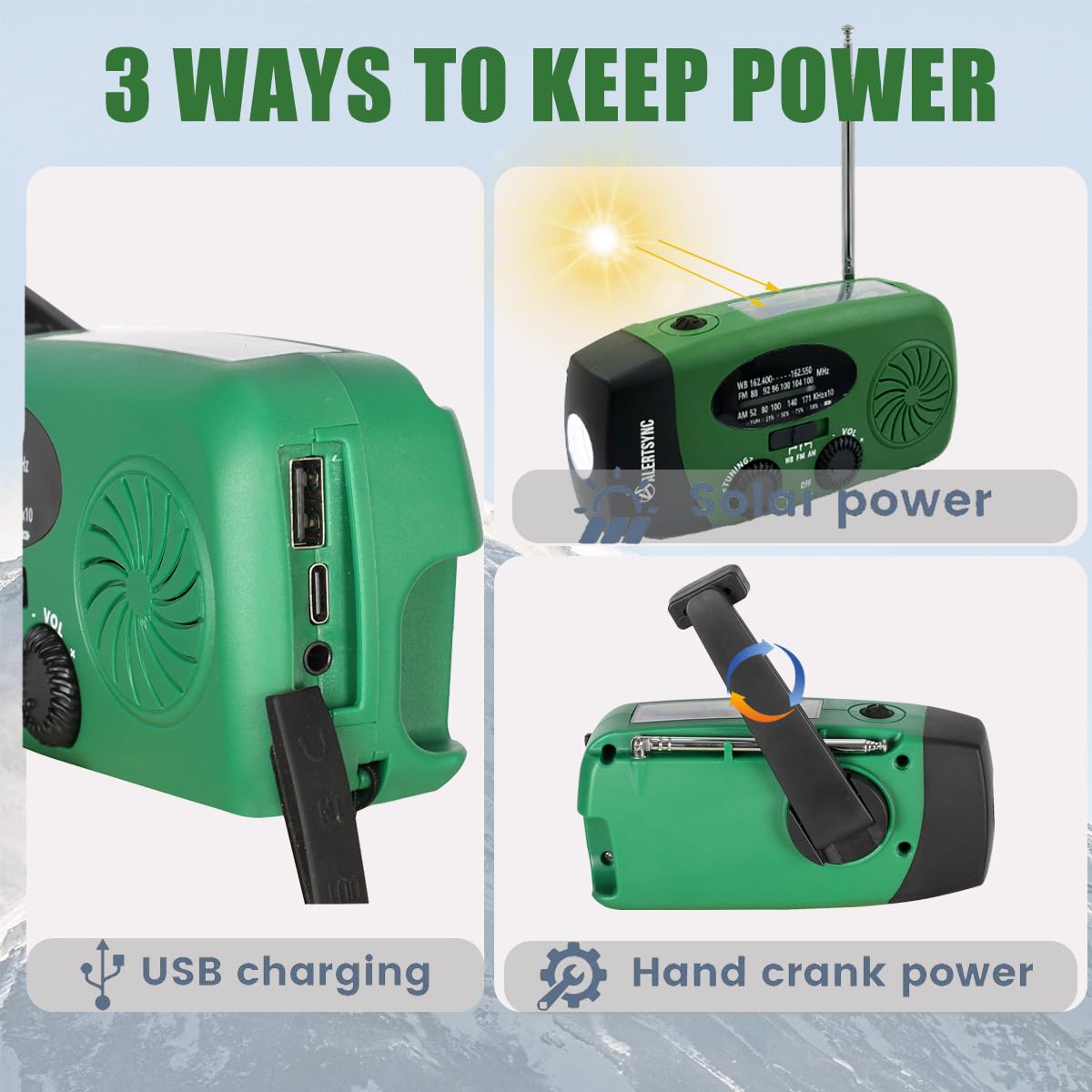 5000Mah Alertsync Noaa Weather Emergency Radio With Solar Charging, Am Fm Hand Crank Windup Radio Sos Alarm Led Flashlight With Earphone Jack For Home, Camping, Survival Hurricane (Green)
