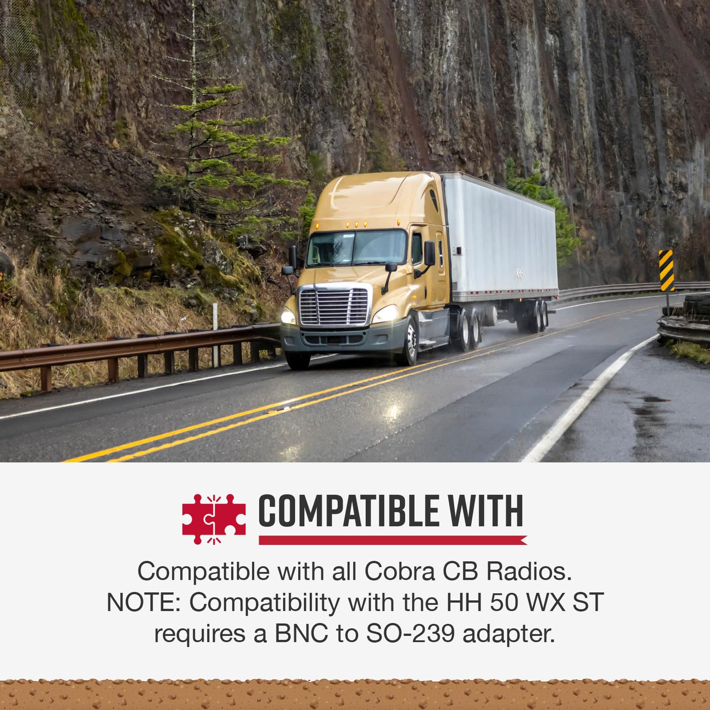 Q: Does the Cobra HG A1000 antenna come with any additional accessories?A: Yes, the Cobra HG A1000 comes with 15 feet of matched-braided coaxial cable that connects to any CB or 10 Meter radio with an RF PL259 connector.