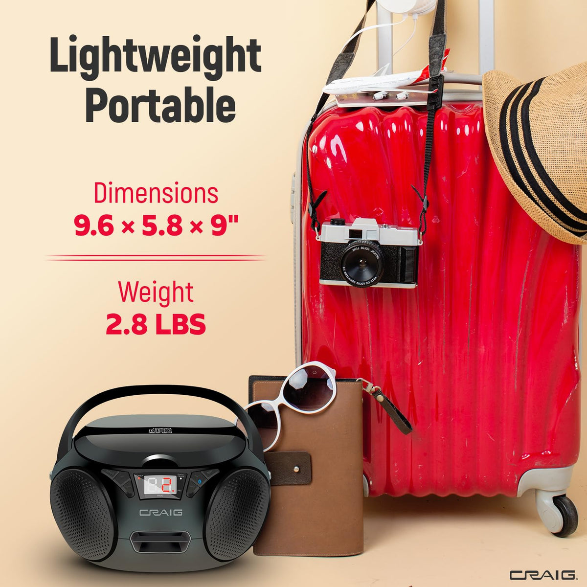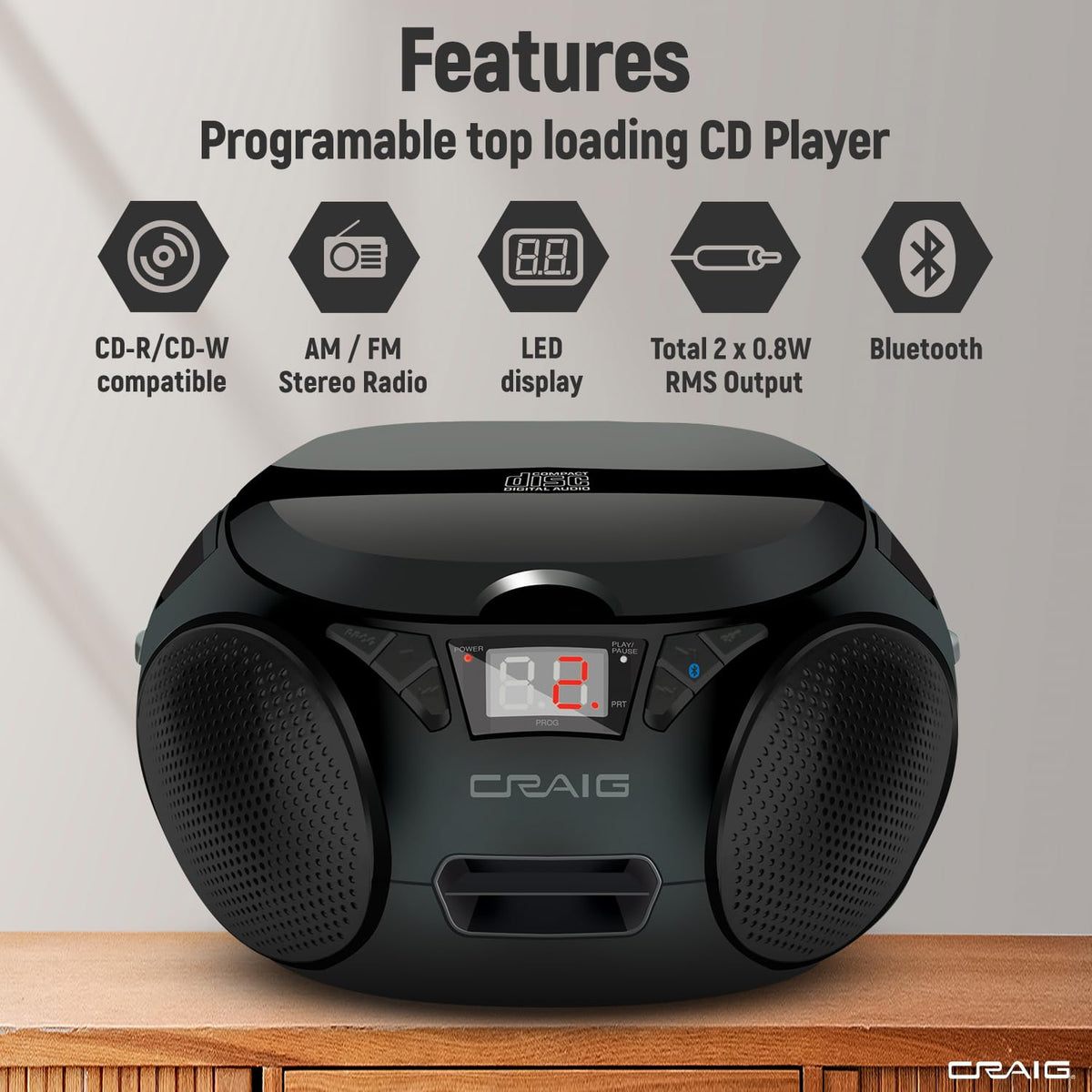 |Craig Cd6925 Portable Top Loading Stereo Cd Boombox With Am/Fm Stereo Radio | Bluetooth Wireless (Black, Bluetooth) | No Headph
