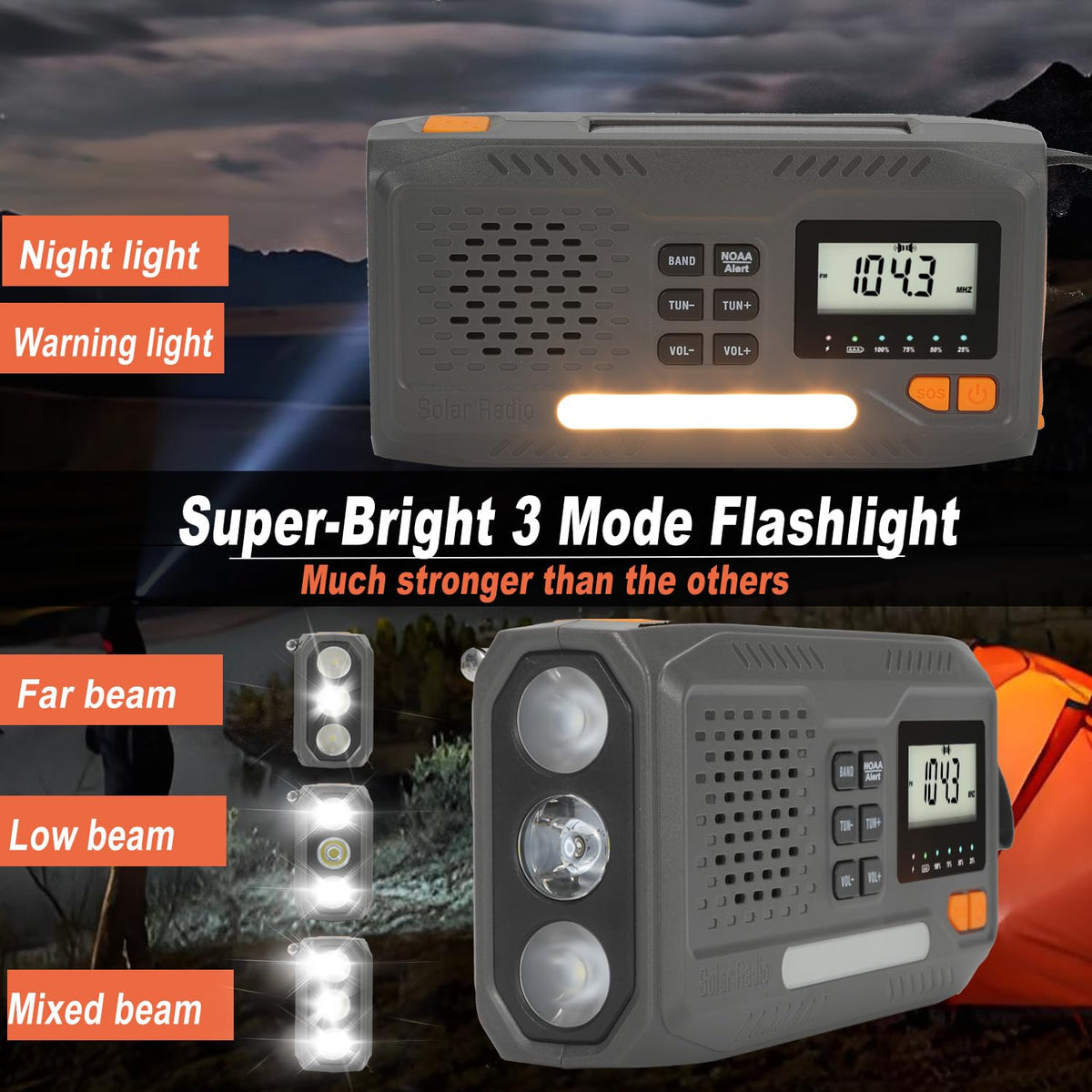 Stay Prepared With This Emergency Weather Radio-A Must-Have For Any Crisis! This Solar Radio And Crank Radio Ensures Reliable Power Via Solar Charging, Hand Cranking, Or Battery-Operated Radio Backup (Batteries Not Included). Tune Into Am/Fm/Noaa Weather Radio Alerts For Real-Time Updates, Featuring Noaa Emergency Weather Radio Broadcasts With Battery Backup. The Built-In Crank Radio Flashlight & Cell Phone Charger (7400Mwh) Keeps Devices Powered During Outages. Other Features Include A Digital Display, Sos Alarm, Headphone Jack, And Durable Design For Indoor/Outdoor Use. Perfect For Emergencies, Camping, Or Storms!