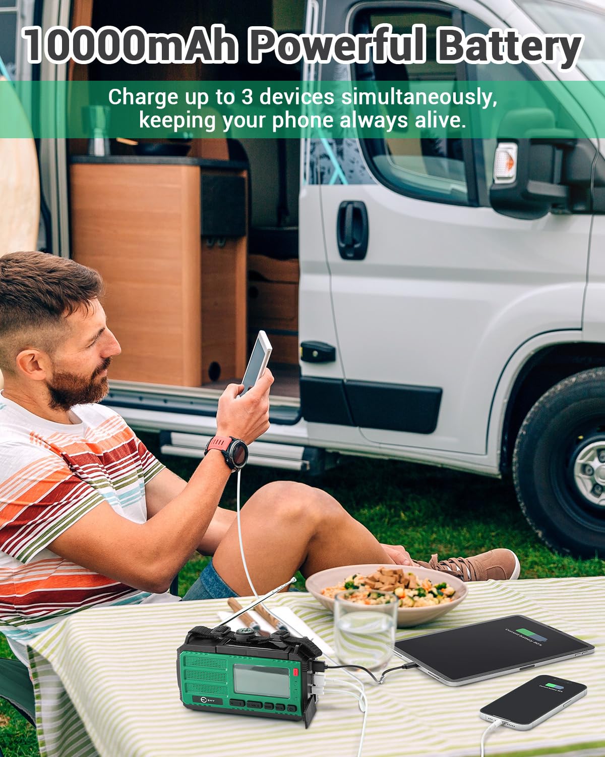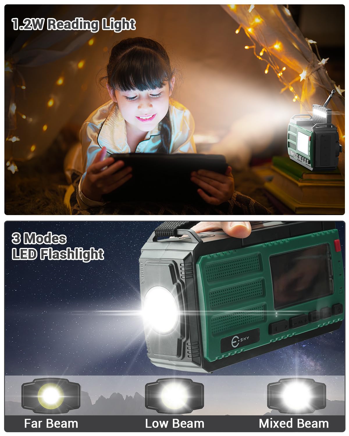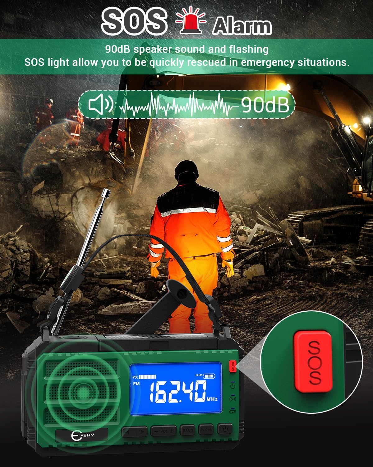 Esky 10000Mah Emergency Hand Crank Radio, Am/Fm/Noaa Portable Weather Alert Radio With Flashlight, Solar Powered Rechargeable Ra