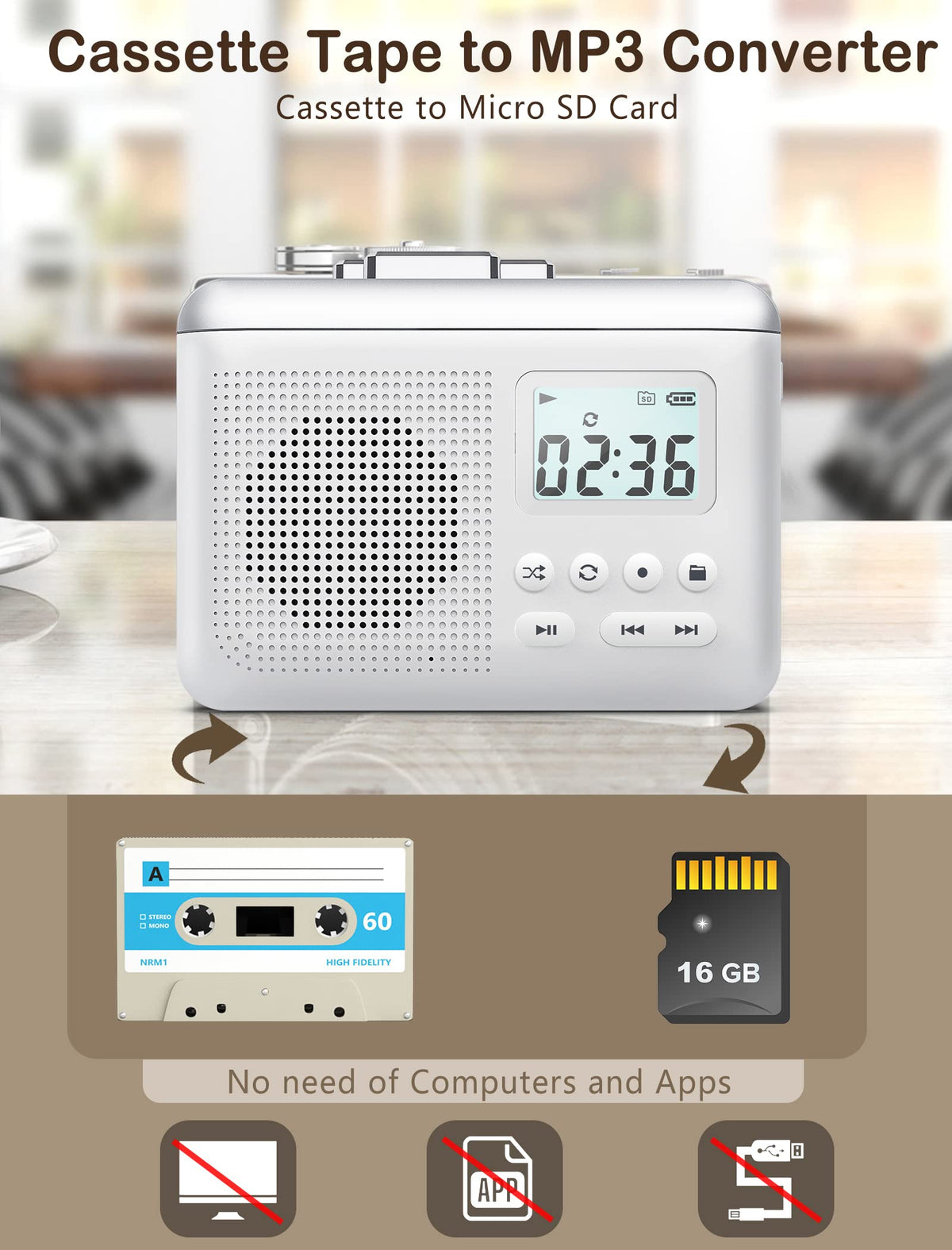 Gracioso Portable Cassette Player Recorder Converter,Cassette To Mp3 Via Sd Card, Walkman Cassette Tape Player With 1000Mah Rech