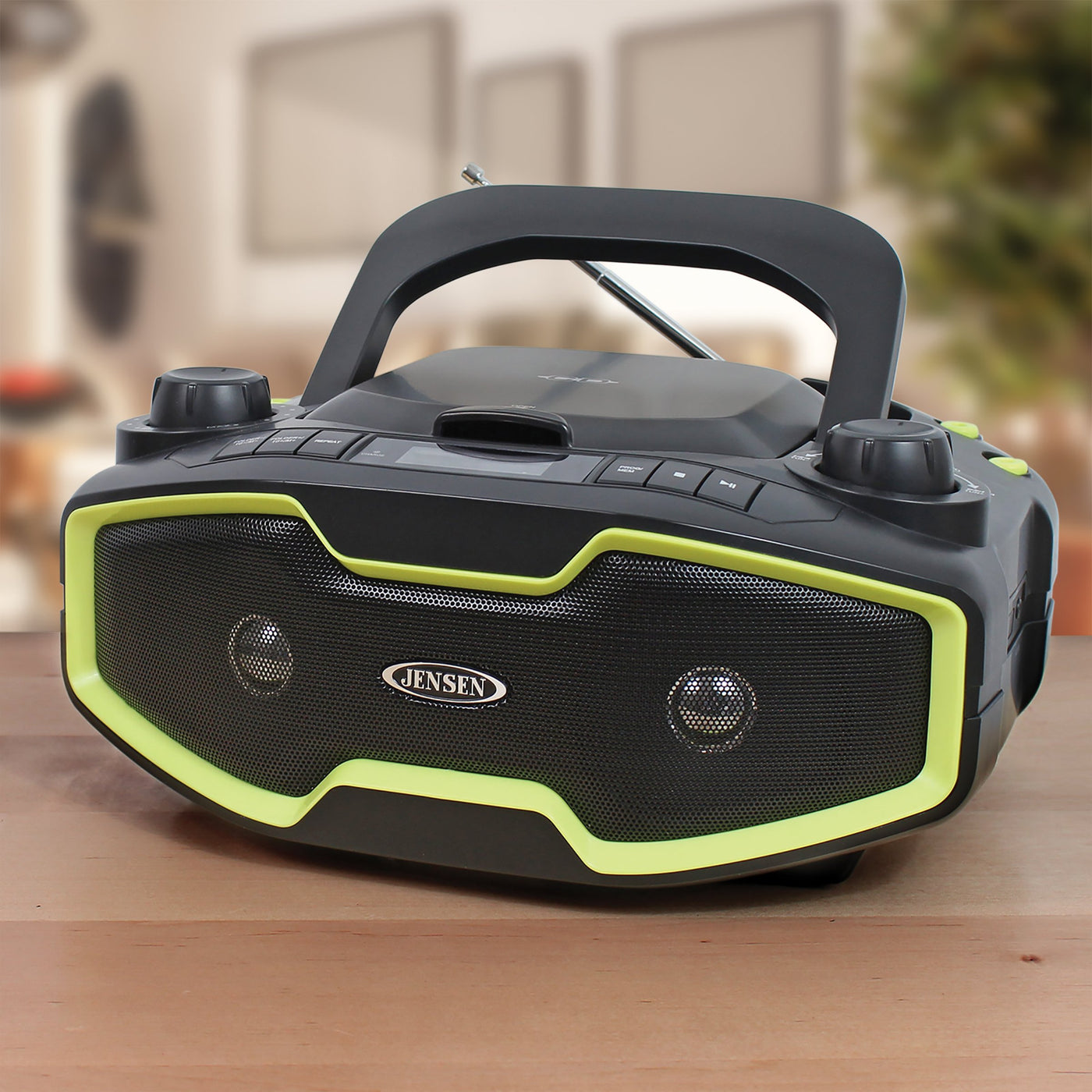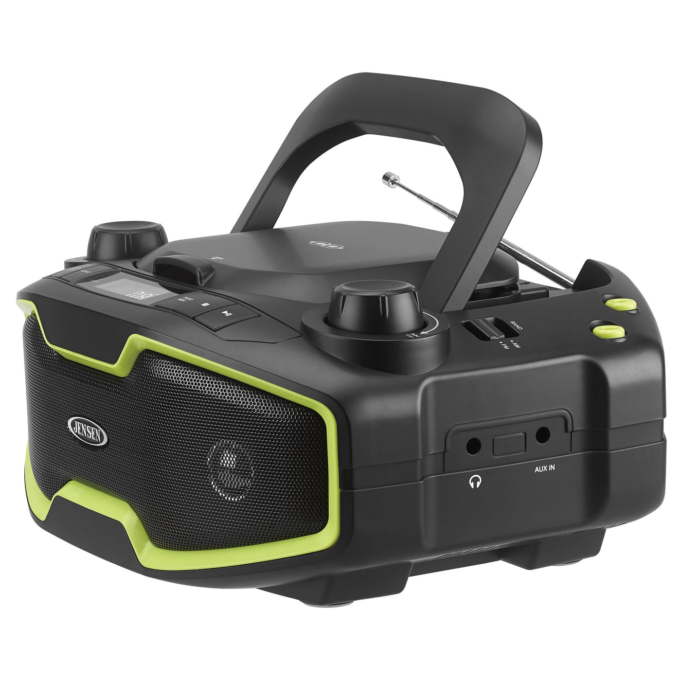 The Jensen Cd-575 Portable Stereo Mp3 Cd Player With Pll Amfm Radio Has An Easy To Use Design Wrapped In Black With A Bright, Contrasting Color Rimming The Speakers You Can Find Your Favorite Radio Stations With Pll Tuning And Program Them With 20 Fm And 20 Am Presets If Youre Bored Of The Radio, Connect Your Ipod, Mp3, Or Other Digital Media Players Into The Aux Input This Player Runs On Electricity But Also Has A Built-In Rechargeable Battery