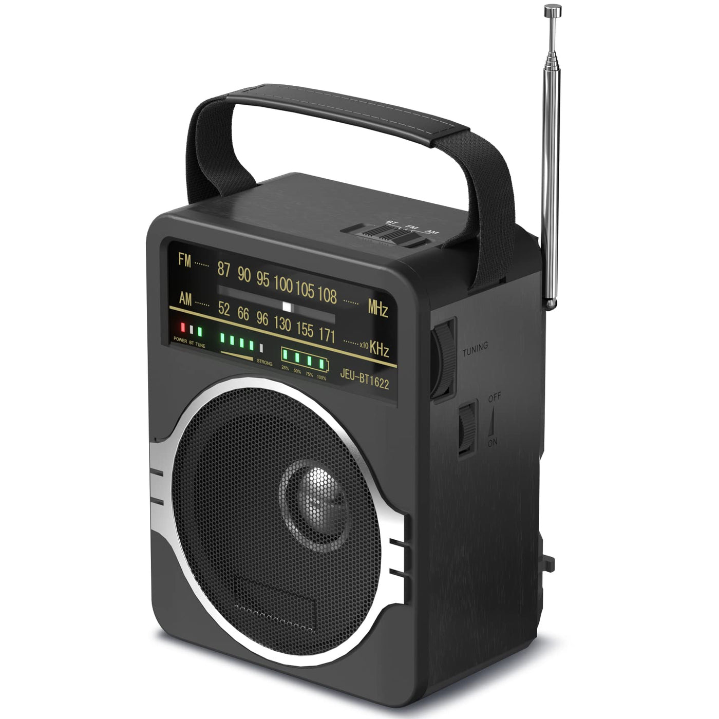 Jeujug Portable Am Fm Radio, Bluetooth 5.0 Radio 5 Watts Loud Speaker,Fm Radio Built In Rechargeable Battery/Dc D*4 Cell Battery