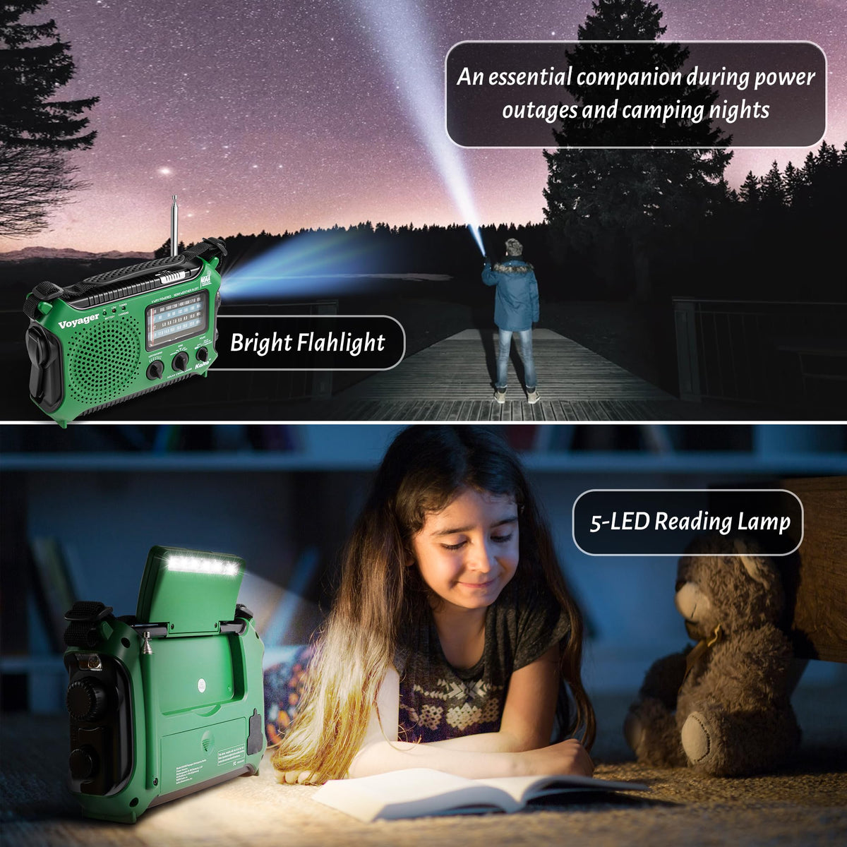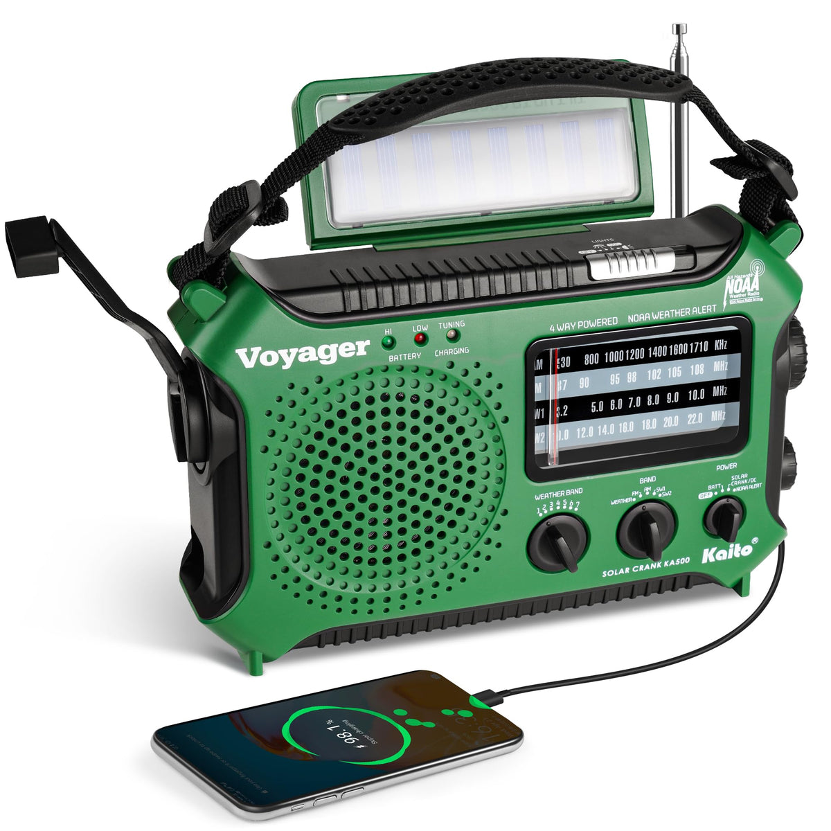 The Newly Released Kaito Voyager Ka500 Is A Sister Product Of Kaitos Widely Praised Emergency Radios Ka007, Ka008 And Ka009 With Its Revolutionary Design And Versatile Functions, Its An Ideal Companion For Emergency Preparedness Purposes, Outdoor Activities As Well As Traveling Specifically Designed For Emergency Situations, The Ka500 Offers Different Methods To Power Itself Those Methods Include Acdc Adapter (Not Included), Three Aa Batteries (Not Included), The Built-In Rechargeable Ni-Mh Battery Which Can Be Recharged From The Ac Adapter, By Hand, By Solar Panel Or By A Pc, And The Dynamo Hand Crank Which Not Only Can Recharge The Built-In Battery But Provides Power Even When No Battery Is Installed At The Heart Of The Ka500, There Is An Internal Generator That Recharges The Internal Replaceable Ni-Mh Battery Pack And Powers The Radio, Flashlight And Reading Lamp Also, By Plugging Your Cell Phone Into The Jack On The Back Of The Radio, You Can Use The Crank To Power Your Phone Not Only That, This Radio Also Features A Usb Port, Which You Can Use Either To Charge Your Radio With A Pc Or Charge Other Electronic Gadgets With The Hand Crank You Can Use The Ka500 To Receive A Wide Range Of Broadcasting Including Am, Fm, Shortwave And Noaa Weather Stations The 7-Weather Channels Are Pre-Programmed And Numbered From 1-7, You Can Easily And Conveniently Tune Into The Stations By Turning The Switch, No More Guess Work Involved Compared With Any Other Solar-Powered Emergency Radios, The Ka500 Has Its Unique 180-Degree Adjustable Solar Panel, Which Can Maximize Sunlight Exposure To Power Up The Radio Or Charge The Internal Ni-Mh Batteries On The Back Side Of The Solar Panel, There Is A Super-Bright 5-Led Reading Lamp Standard Accessories Include Earphones, User Manual And Bonus Multiple Adapter Tips For Charging Select Models Of Motorola, Nokia, Samsung, And Lg Phones