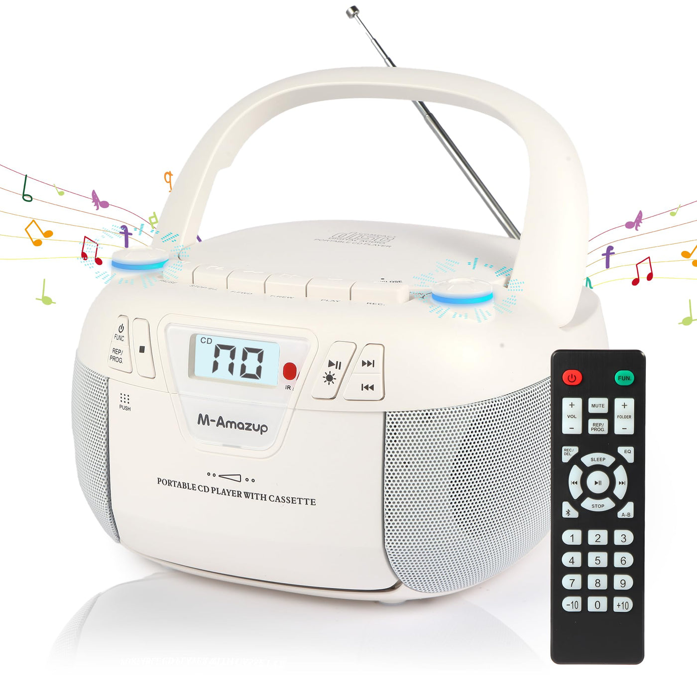 M-Amazup Boombox Cd Player Portable Cassette Player With Cd Mp3 Bluetooth Aux Tf/Usb Am/Fm Radio Ac/Dc Powered With Remote Contr
