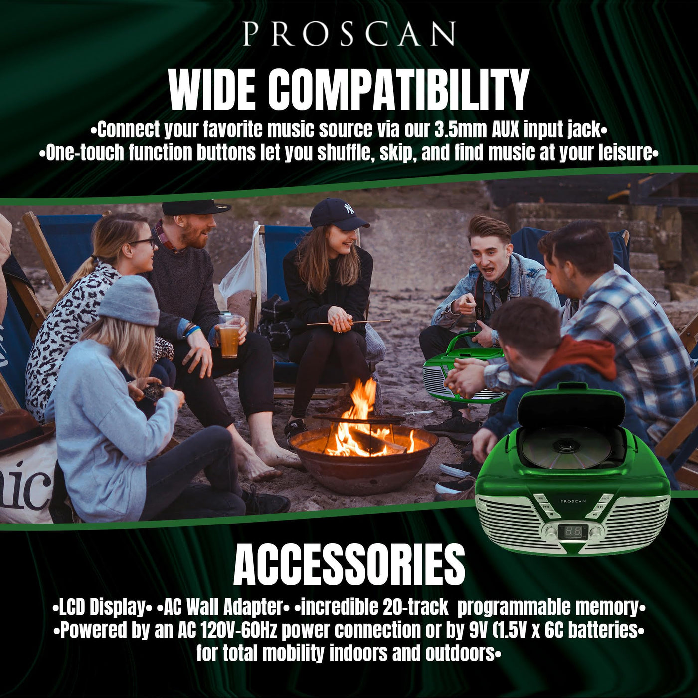 When You Hear The Sylvania Name, Immediately You Think Of Quality Built, Affordable Electronics. Well The Folks At Sylvania Are At It Again. Introducing The Retro Portable Cd-Radio-Boombox. The Time For End Of Summer Bonfires Has Arrived So Of Course Youll Need A Boombox! Youll Be Able To Enjoy Any Of Your Favorite Throwbacks With The Top-Loading Cd Player With Led Display, Or Any Of Your Favorite New Music With The Am/Fm Radio. Do You Have A Favorite Summer Playlist On Spotify? Well This Boombox Has An Aux-In Jack So You Can Do That! This Boombox Is Extremely Lightweight With Ac Power Supply So You Can Bring It Anywhere With You. All This From The Makers At Sylvania, The #1 Leader In Electronics.