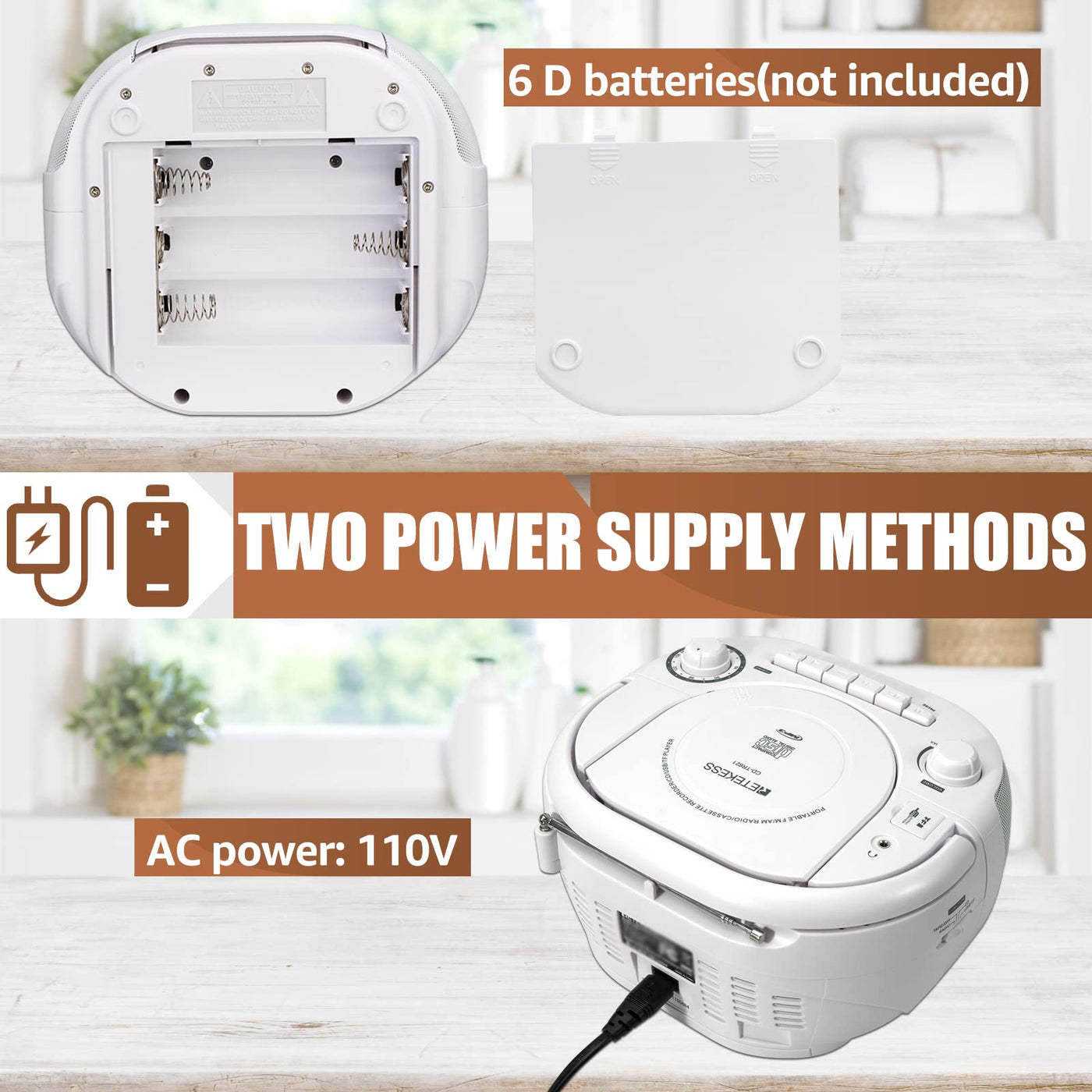 Retekess Tr621 Cd And Cassette Player Combo, Portable Boombox Am Fm Radio, Tape Recording, Stereo Sound With Remote Control, Usb