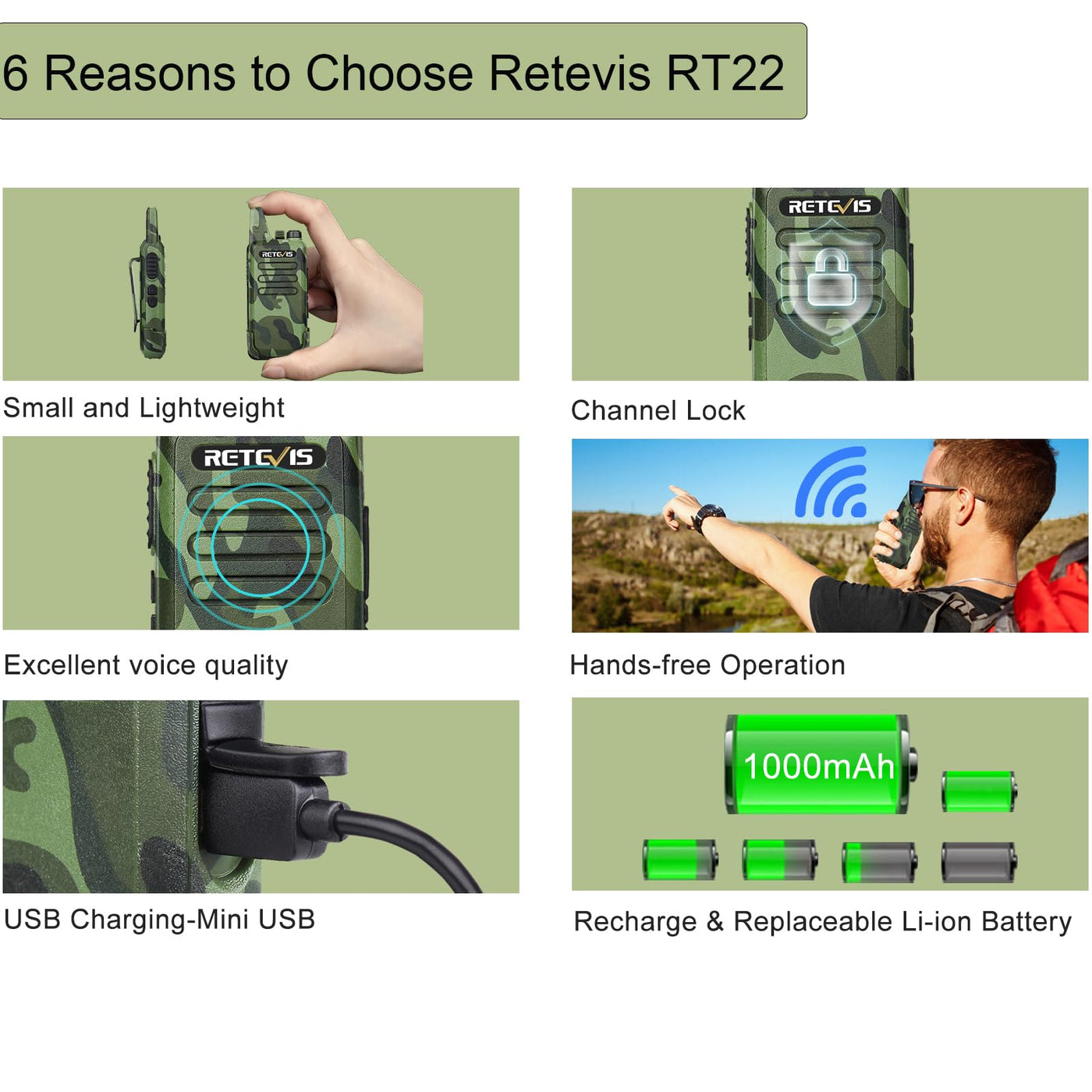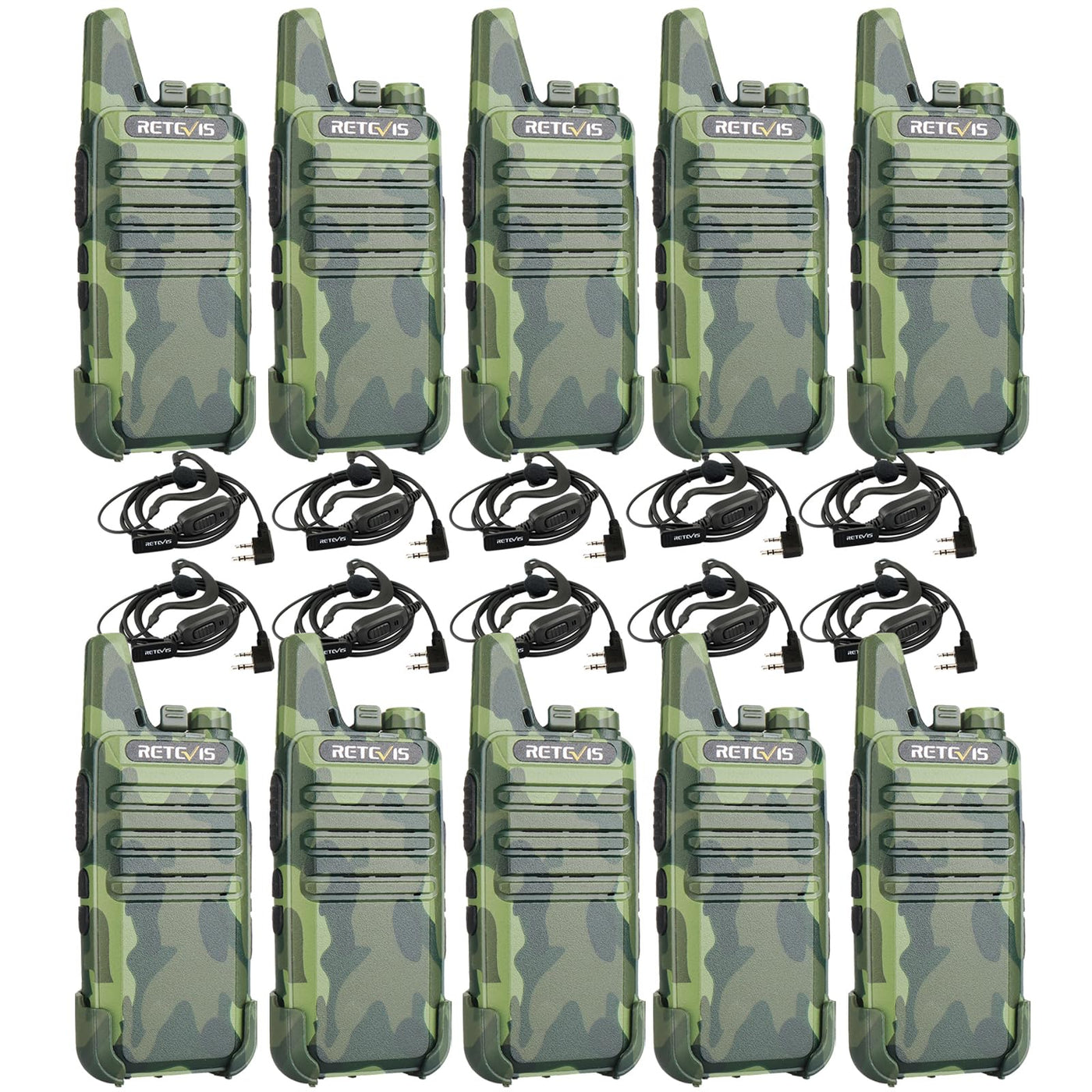Retevis Rt22 Walkie Talkies With Earpiece, Portable Frs Two Way Radios, Camouflage, Compact, Lightweight, Vox Hands Free, Handheld 2 Way Radio With Headsets(10 Pack)