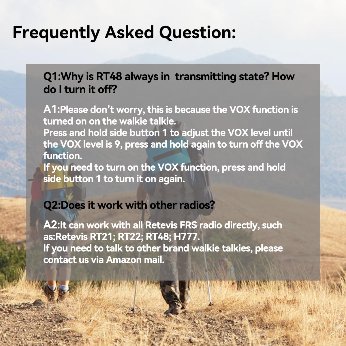 Feature: Ip67 Waterproof Vox Vox Delay Alarm Squelch Level Time-Out Timer Battery Save Mode Battery Voltage Prompt Busy Channel Lockout Beep Package Includes 2 X Rt48 Walkie Talkie 2 X Battery 2 Xusb Charger 2 X Earpiece 2 X Belt Clip 2 X Hand Strap 2 X English User Manual