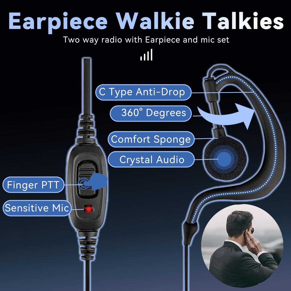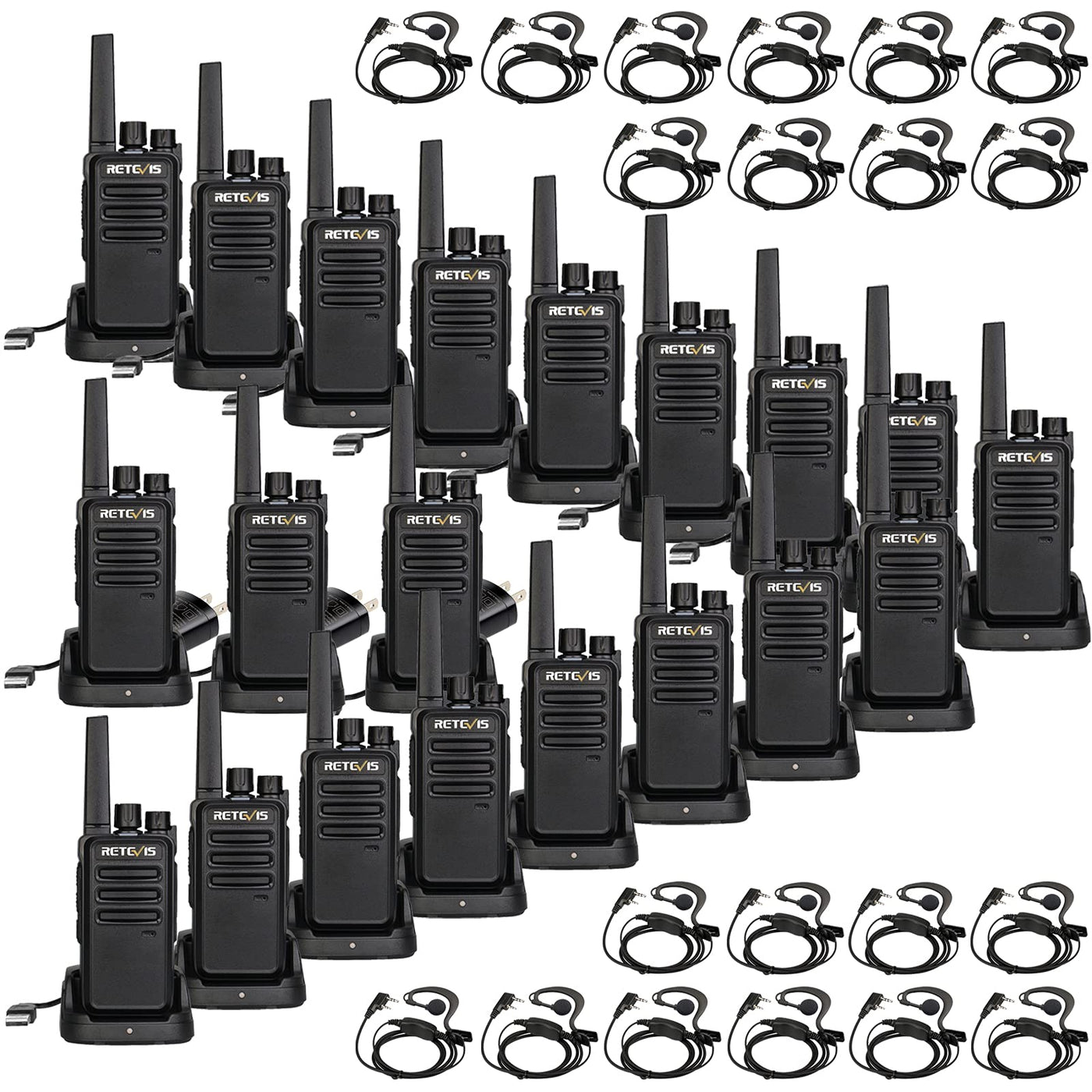 Retevis Rt68 Walkie Talkies With Earpiece,2 Way Radios Long Range,Heavy Duty Walkie Talkies For Adults,Rechargeable With Usb Charger Base, For Restaurant School Manufacturing Healthcare(20 Pack)