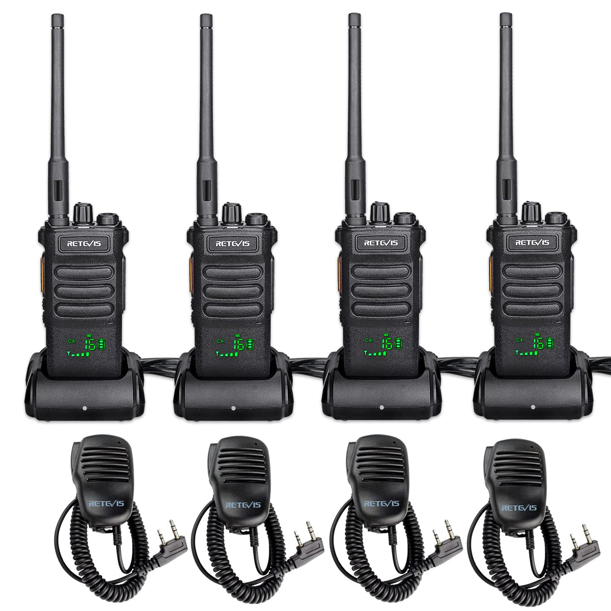 Retevis Rt86 High Power 2 Way Radios Enhanced Audio Quality, A Rugged Design And Strong Penetration Make This Radio An Exceptional Choice For All Of Your Business Needs. This Is Industrial Grade, Business Radio. Constructed In Accordance With Military Specs For Shock, Vibration, Water, Dust And High/Low Temperatures Aka. It'S The Heavy Duty Walkie Talkie To Choose For Your Heavier, Dirtier Duties. Fetures: Large Capacity And Long Standby 1.4 Inch Screen Flashlight Function Logo Glow (When Receiving/Sending) Level 9 Squelch One-Key Scanning Function High Power, Long-Distance Call Package Includes: 4 X Two Way Radio 4 X Battery 4 X Charger And Adapter 4 X Back Clip 4 X English User Manual