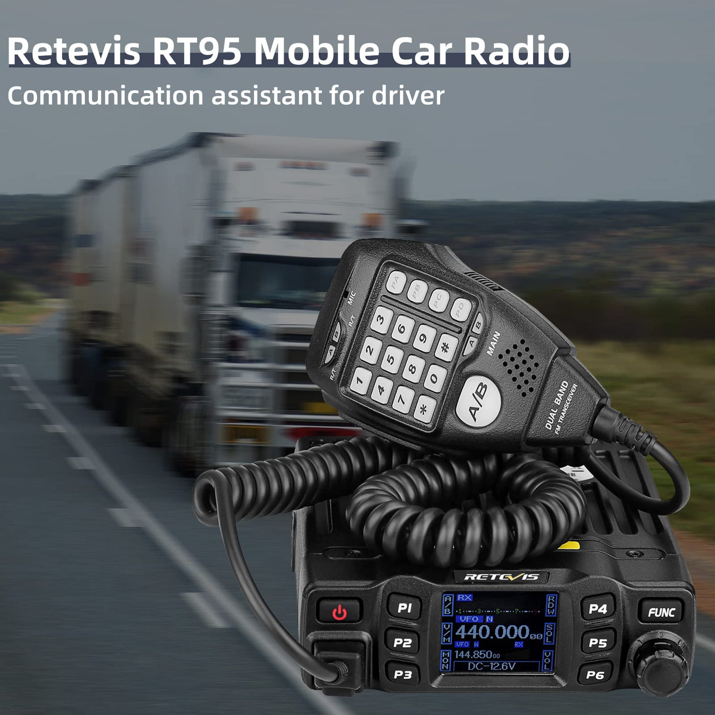 Retevis Rt95 Dual Band Mobile Radio, Long Range Ham Radio With Antenna, 180 Degree Rotatable Lcd Display, Mic Gain, Chirp, Dtmf, 2M 70Cm Mini Mobile Transceiver For Rv Camping