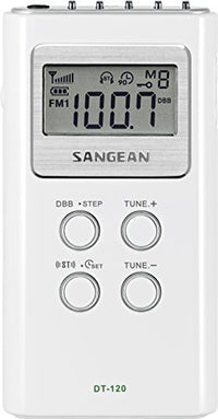 From The Manufacturer Underneath The Beautiful White Case, The Dt-120 Am/Fm Compact Pocket Radio Is A Radio Compact In Size But Offering Amazing Sensitivity And Selectivity With Pll Digital Tuning That Will Easily Tune In And Program All Of Your Favorite Stations. The Dt-120 Features 15 Preset Stations (10 Fm, 5 Am), Auto Search, Battery Indicator And Turns Off Automatically After 90 Minutes To Conserve Battery Life. Pocket-Sized The Dt-120 Is A Small Pll-Synthesized Am/Fm Stereo Radio Thats Small Enough To Fit In A Shirt Or Jacket Pocket, And Powerful Enough To Pull In Those Distant Am/Fm Stations. It Measures A Mere 2 By 3.7 By 0.7 Inches, And Weighs Only 2 Ounces, Making It Portable Enough To Take Anywhere. A Radio Compact In Size But Offering Amazing Sensitivity And Selectivity With Pll Digital Tuning Big Features You Get 15 Memory Presets (And Auto Scan) To Help You Zip Right To Preferred Stations. The Radio Comes With Stereo Earbuds. Dbb (Deep Bass Boost) Enhances The Sonic Low End, While A Stereo-Mono Switch Improves Reception When Needed. With Phase Loop Lock Digital Tuning And Sangeans Traditional Radio Sensitivity, Plus Included Earbuds, You Will Be Able To Enjoy Your Morning Jog, Your Short Trip To The Beach, Or Other Outing Without Missing Your Favorite Am/Fm Station If You Have The Dt-120 Pocket Radio. Battery Powered With Auto Shut-Off The Sangean Dt-120 Runs On Two Aaa Batteries (Not Included). A Low-Battery Indicator On The Lcd Display Offers A Helpful Hint On When Its Wise To Carry Replacements. 90-Minute Auto Shut-Off Lets You Fall Asleep To The Radio Without Fear Of Waking Up To Dead Batteries.