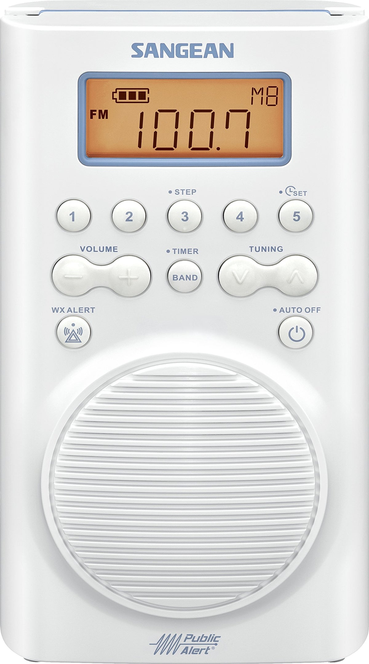 Weather Still Plays A Sometimes Dangerous Role In Our Lives So In Some Weather Emergencies A Portable Radio Can Be Essential. The H205 Fm/Am/Weather Alert Waterproof Shower Radio From Sangean Will Ensure That You Have Weather Information Anytime During A Storm Or An Emergency. A Siren Function Will Alert You During Extreme Weather Conditions Or Emergencies To Help You Be Prepared And Safe. Compact In Size And Waterproof, This Weather Alert Radio Also Has Great Sound And Gets Excellent Am/Fm Reception. This White Weather Radio Is Waterproof With A Jis7 Rating And Is Completely Submersible. So Whether You Are At The Beach, The Lake Or In The Shower, You'Ll Have Peace Of Mind Knowing You'Ll Be Instantly Alerted If Weather Conditions Turn Bad.