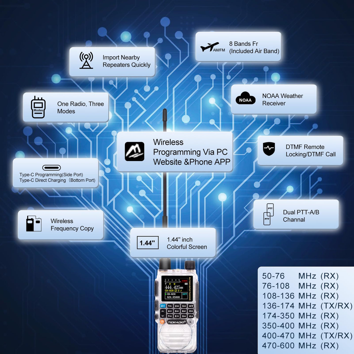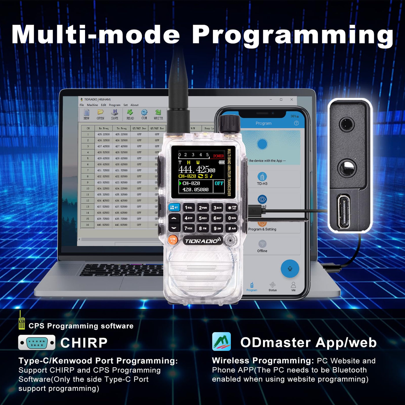 Tidradio Td H3 Ham Radio Type C & Wireless Programming(4Pcs Batteries),8 Band Long Range Walkie Talkies Rechargeable Handheld Po