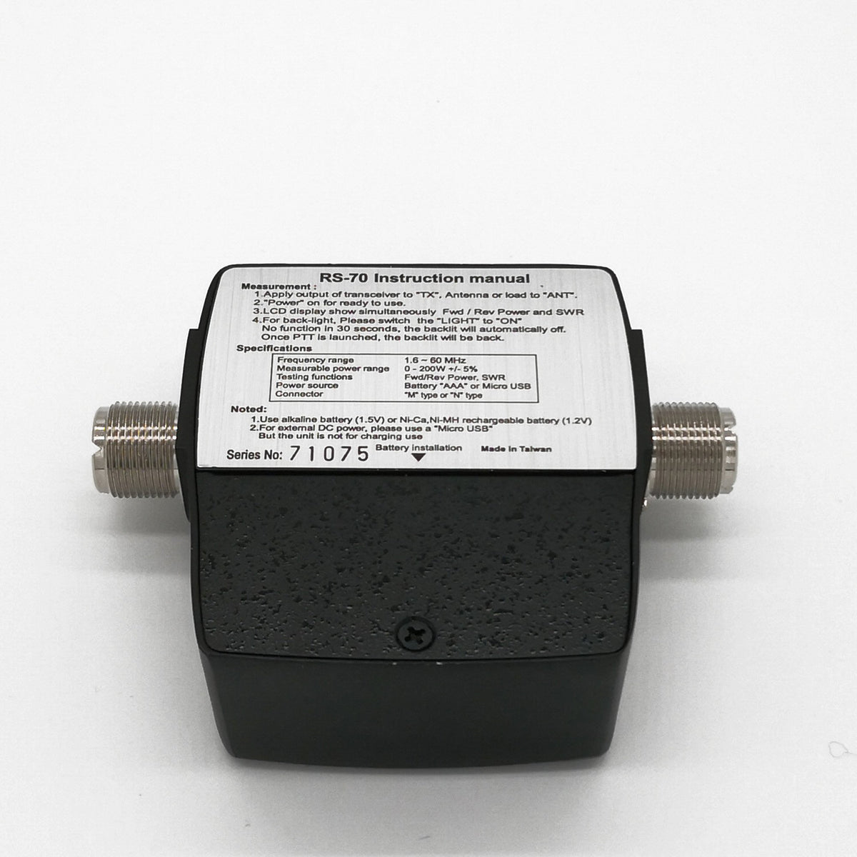Specifications: Frequency Range: 1.6-60 Mhz Power Range:0-200W +/- 5% Impedance: 50 Ohm Connector: M-J(So-239 (M)) Dimension: 70W X 78H X 30D Mm Net Weight: 220G