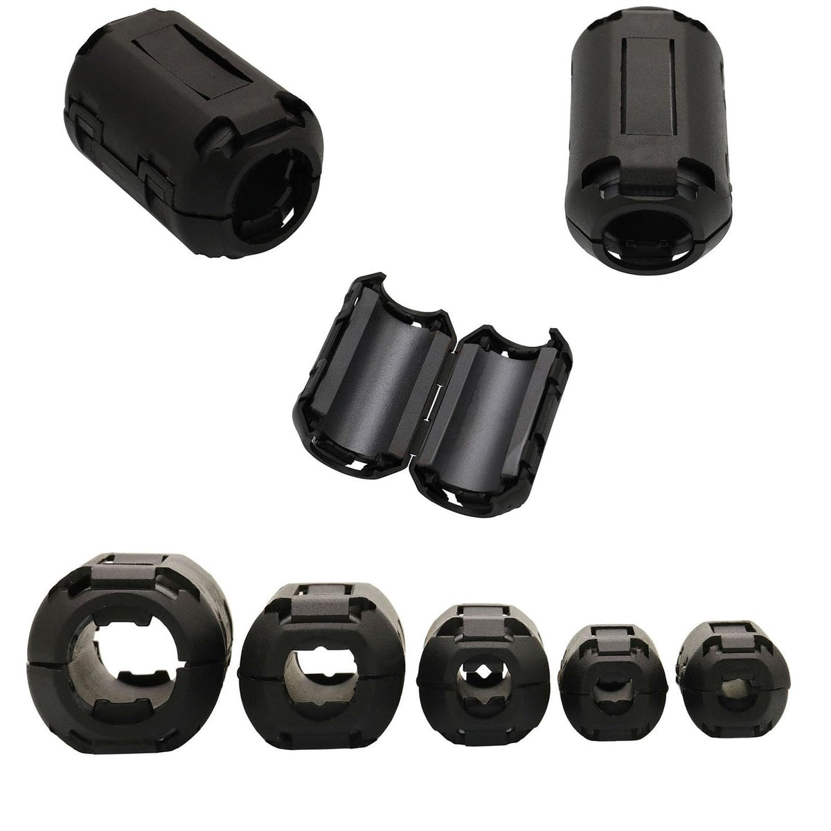 Q: What sizes of cables can these ferrite clips accommodate?A: These ferrite clips are designed to fit cables with inner diameters of 3.5mm, 5mm, 7mm, 9mm, and 13mm. This versatility makes them suitable for a wide range of cables including audio, video, USB, and power cords.