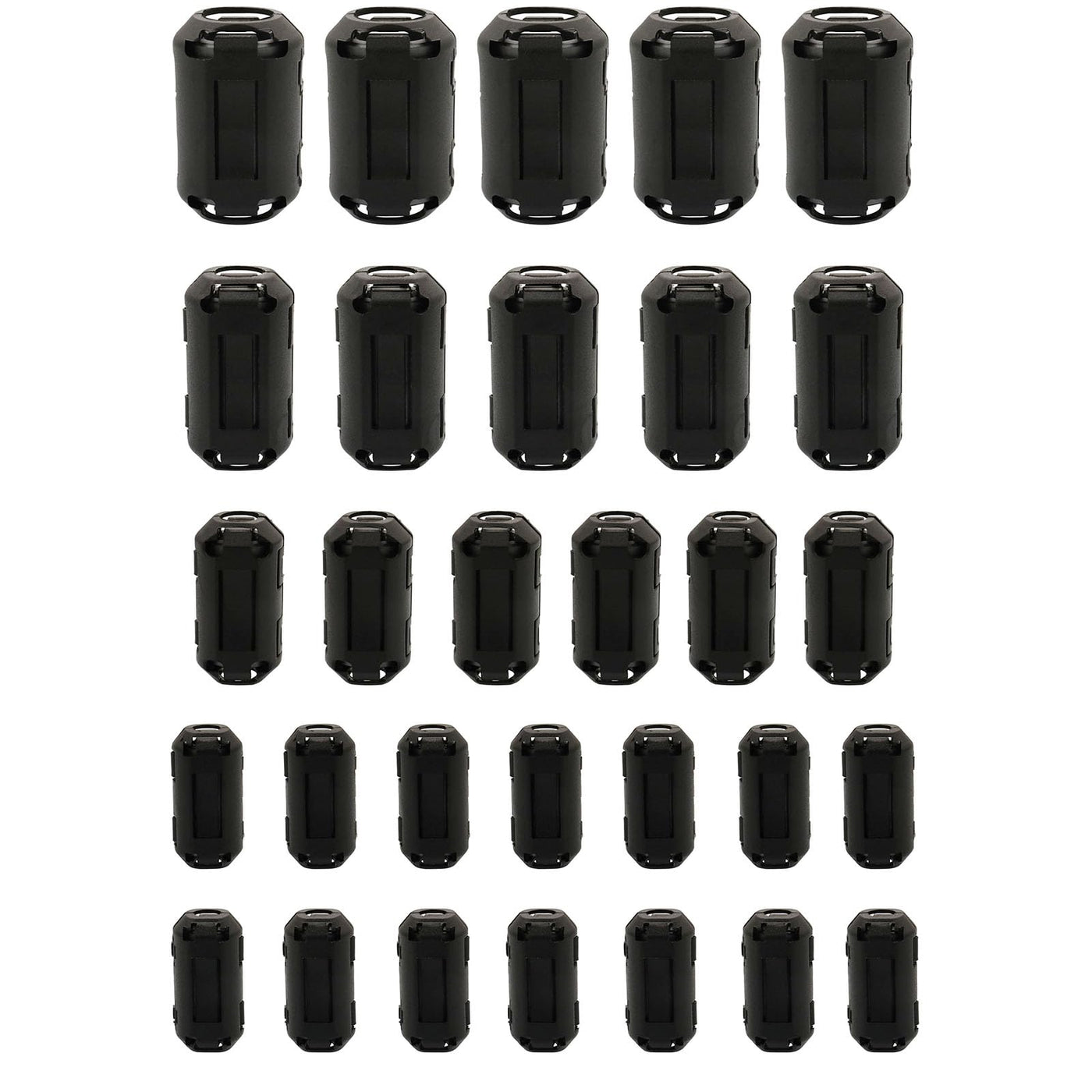 30Pcs Clip On Ferrite Ring Core Rfi Emi Noise Suppressor Cable Clip For 3.5Mm/ 5Mm/ 7Mm/ 9Mm/ 13Mm Inner Diameter Telephones,Tvs