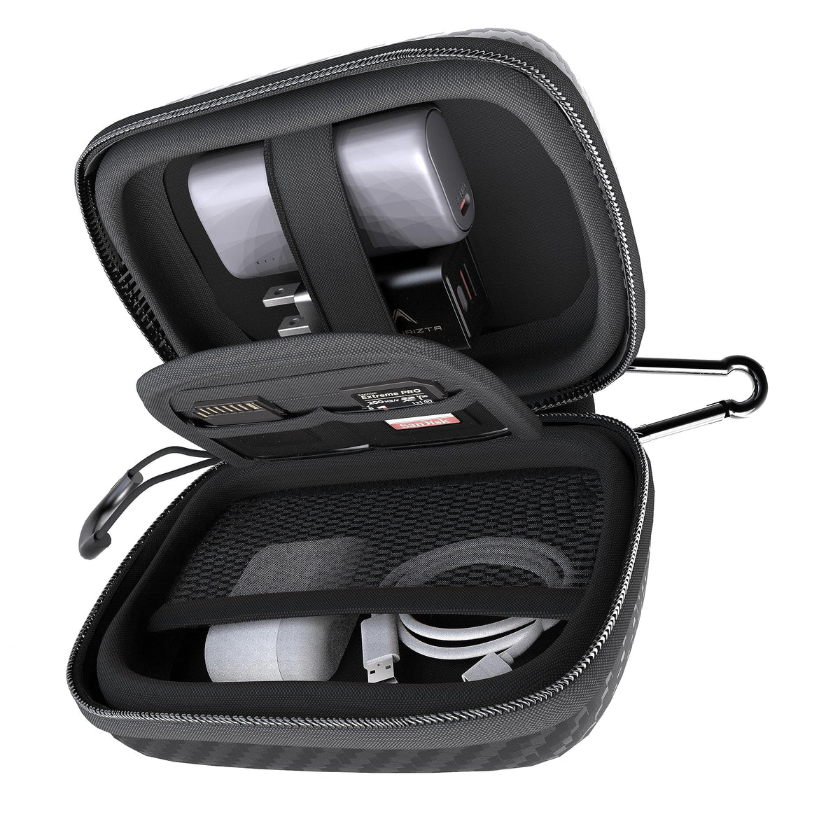 Futurizta Tech� Mini Hard Shell Eva Carrying Case Impact & Water Resistant With Carabiner, Sd Card Slot 9Cm X 13Cm For Mini Powerbank, Charger, Cable, Ssd And Earphones
