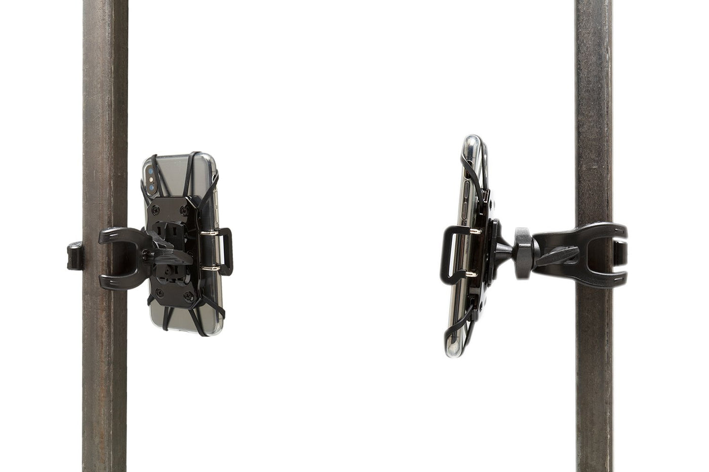 This Gadget Has A Pair Of Clamps That You Can Tighten Around Any Pole Or Bar E.G. The Handle Of Your Golf Pull Cart. It Also Has A Pair Of Spring Loaded And Padded Clamps For Your Phone Itself. It Allows You To Easily Clamp Your Phone Onto Any Rod Or Bar And Film Your Golf Swing Or Anything Else. Very Easy To Use And Helpful.