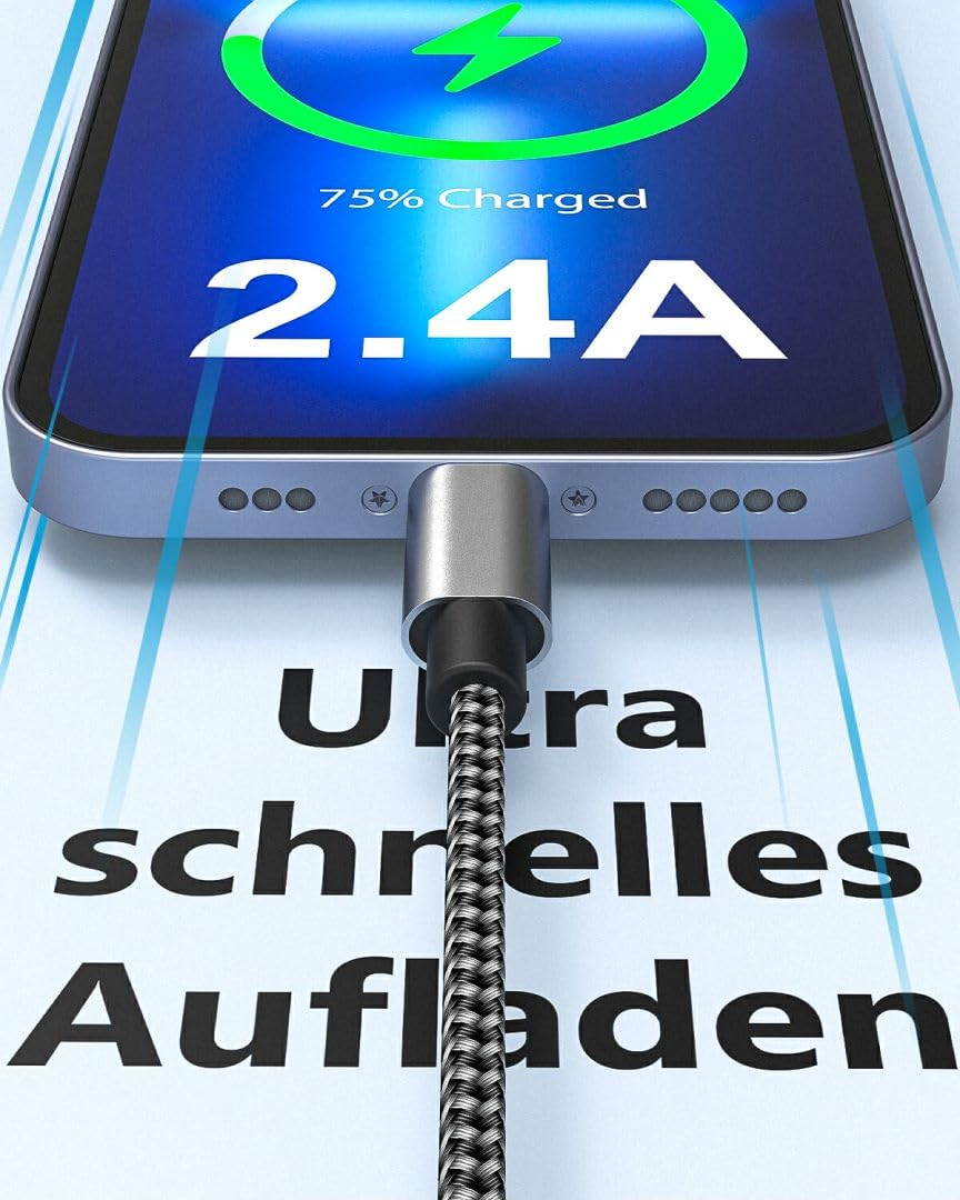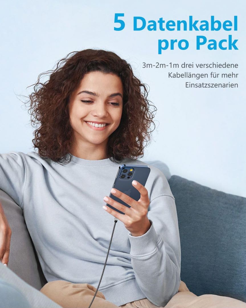 5 Pcs Iphone Charging Cable Package Phone Cable Is Suitable For Men, Women, Boy, Girl. Both Long And Short. 2Pcs X 3 Feet Black+Gray Nylon Braided Iphone Charger Cable. 2Pcs X 6 Feet Black+Gray Nylon Braided Iphone Charger Cable 1Pcs X 10 Feet Black+Gray Nylon Braided Iphone Cable Cord