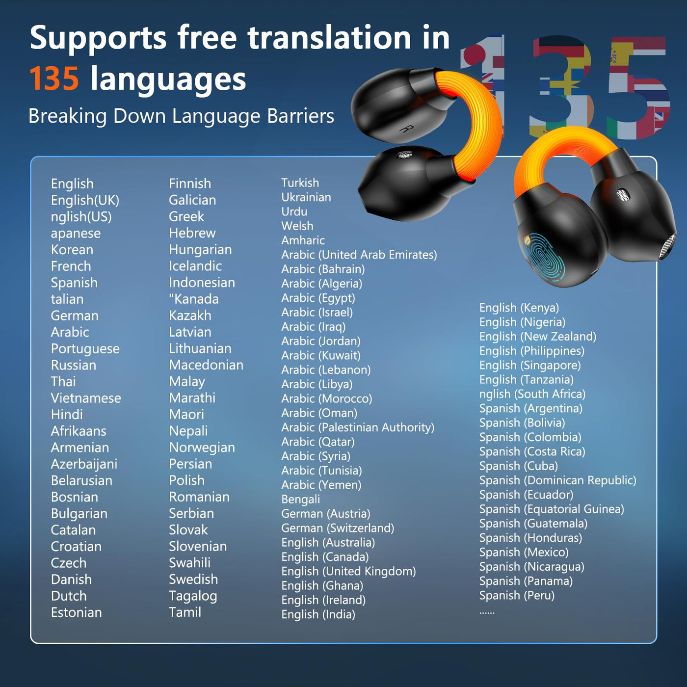 Miniso Ms191 Ai Translation Earbuds In Real Time, Language Translator Earbuds Open Ear Clip Wireless Headphones Support 135 Lang