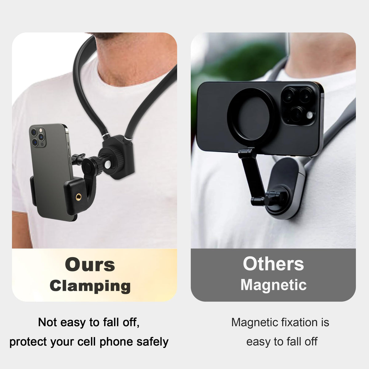 Neck Mount For Phones, Neck Cell Phone Holder Pov/Vlog Selfie Mount Hand Free Phone Neck Holder Chest Stand Strap Video Recordin
