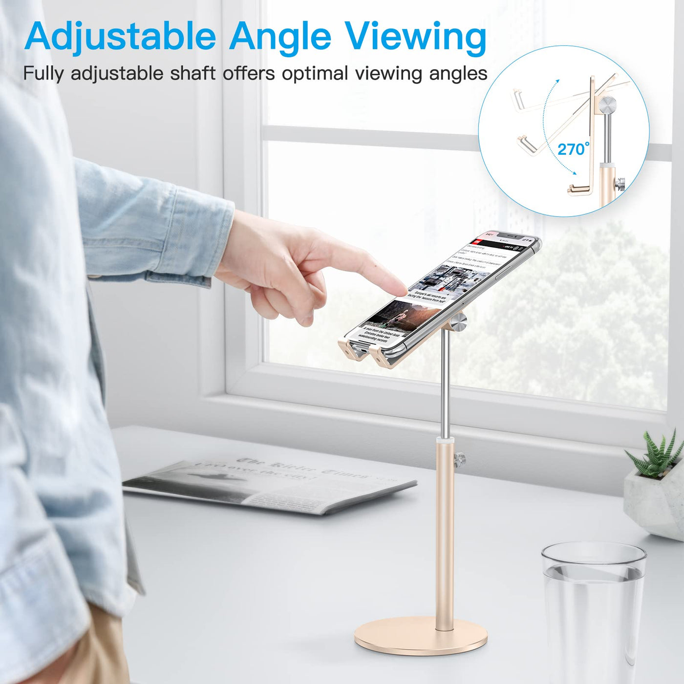 Omoton Cell Phone Stand, Angle Height Adjustable Phone Stand, Aluminum Desktop Phone Holder Dock Stand For Desk, Compatible With Iphone 13/Mini/Pro/Max, All Smartphones And Tablets(4 11''),Gold
