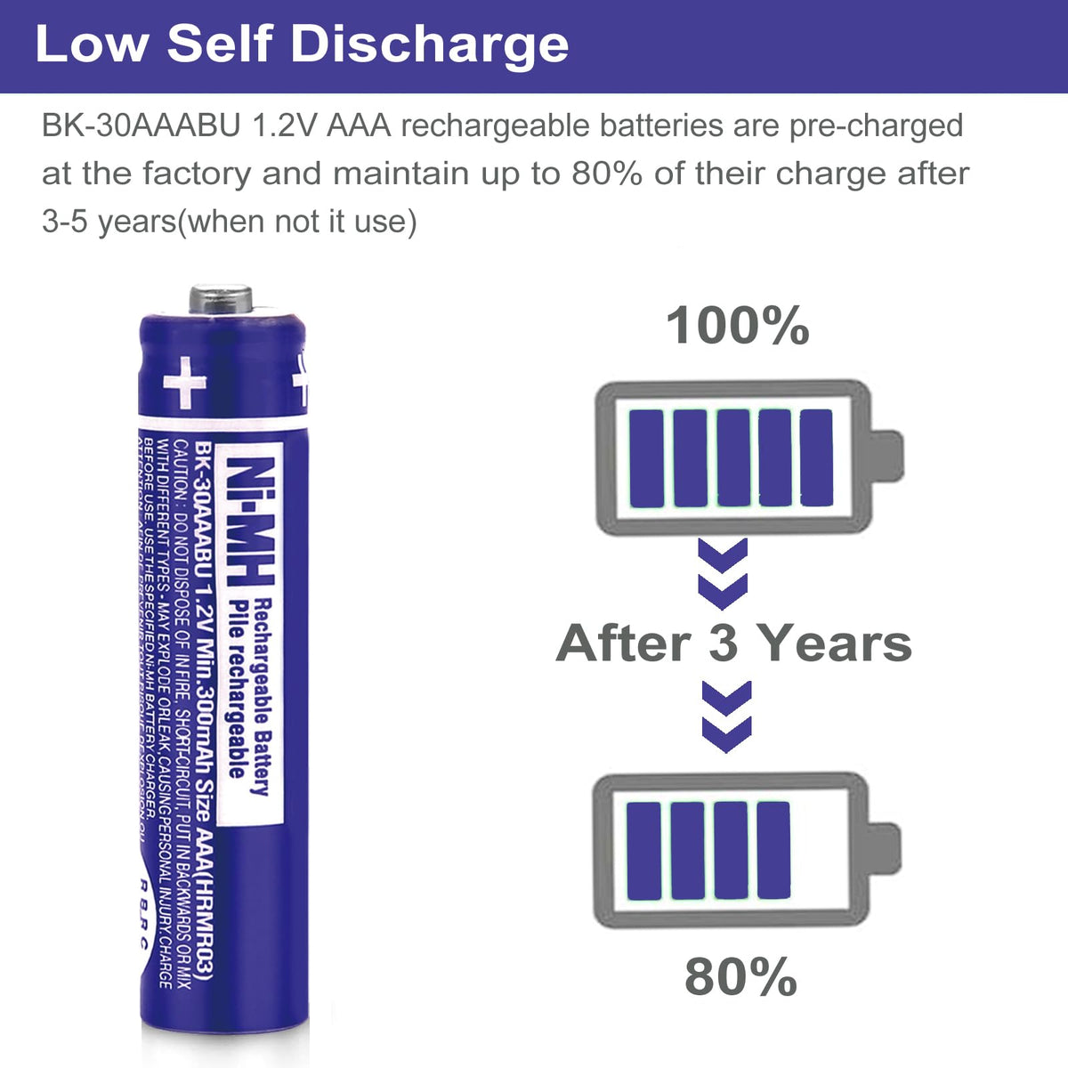 Osim 4Pack Bk 30Aaabu Ni Mh Aaa Rechargeable Batteries 300Mah Aaa Ni Mh Rechargeable Batteries 1.2V For Cordless Phones, Remote